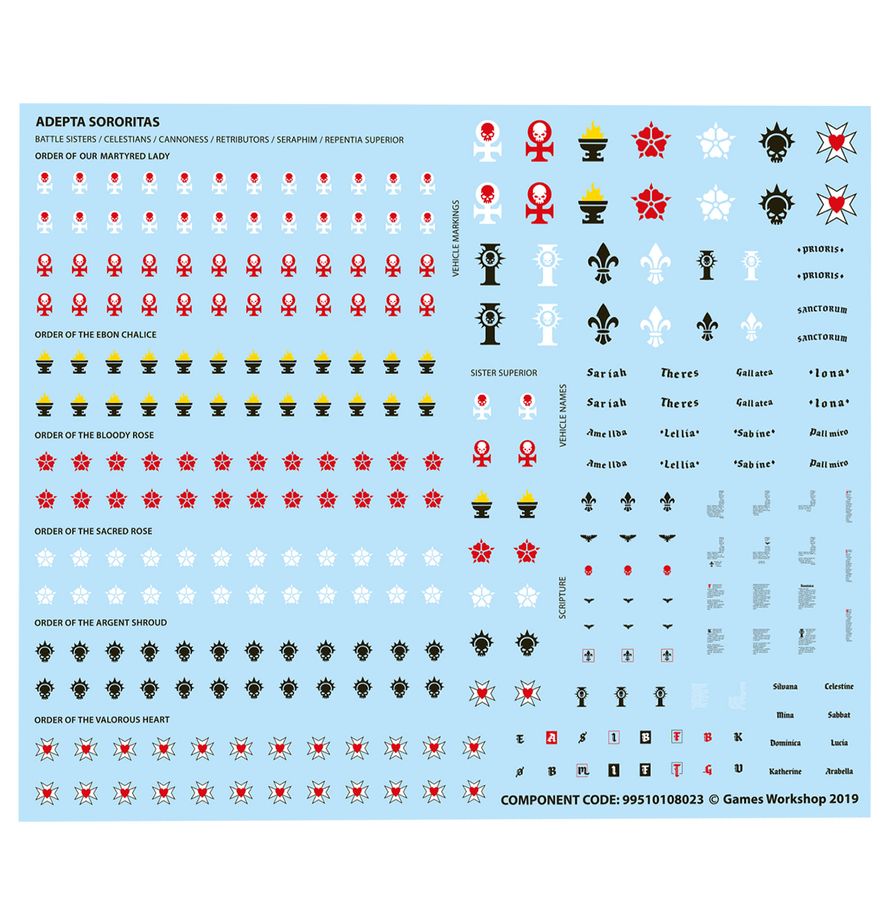 – 1x Abziehbilderbogen des Adepta Sororitas mit 290 hochwertigen Abziehbildern