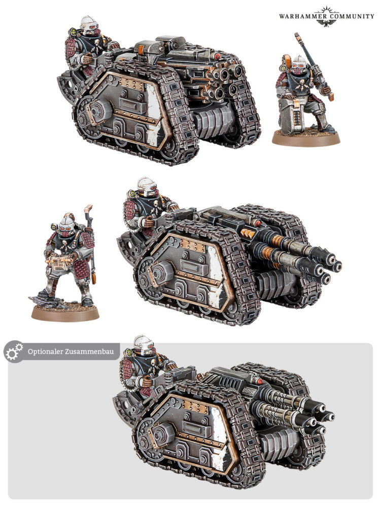 Es gibt auch eine Version des Rapier-Waffenträgers, der für direkt feuernde Unterstützungswaffen ausgelegt ist. Die beiden Plattformen können entweder mit einer Schweren Gravis-Bolterbatterie, einer Gravis-Multilaserphalanx oder einem Zerstörerlaser ausgerüstet werden. Das bietet infanteriestarken Armeen das Werkzeug, einer Vielzahl feindlicher Einheiten Herr zu werden, von Horden schwächerer Kämpfer bis hin zu schweren Panzern. Und das alles zu sehr kompetitiven Punktkosten.