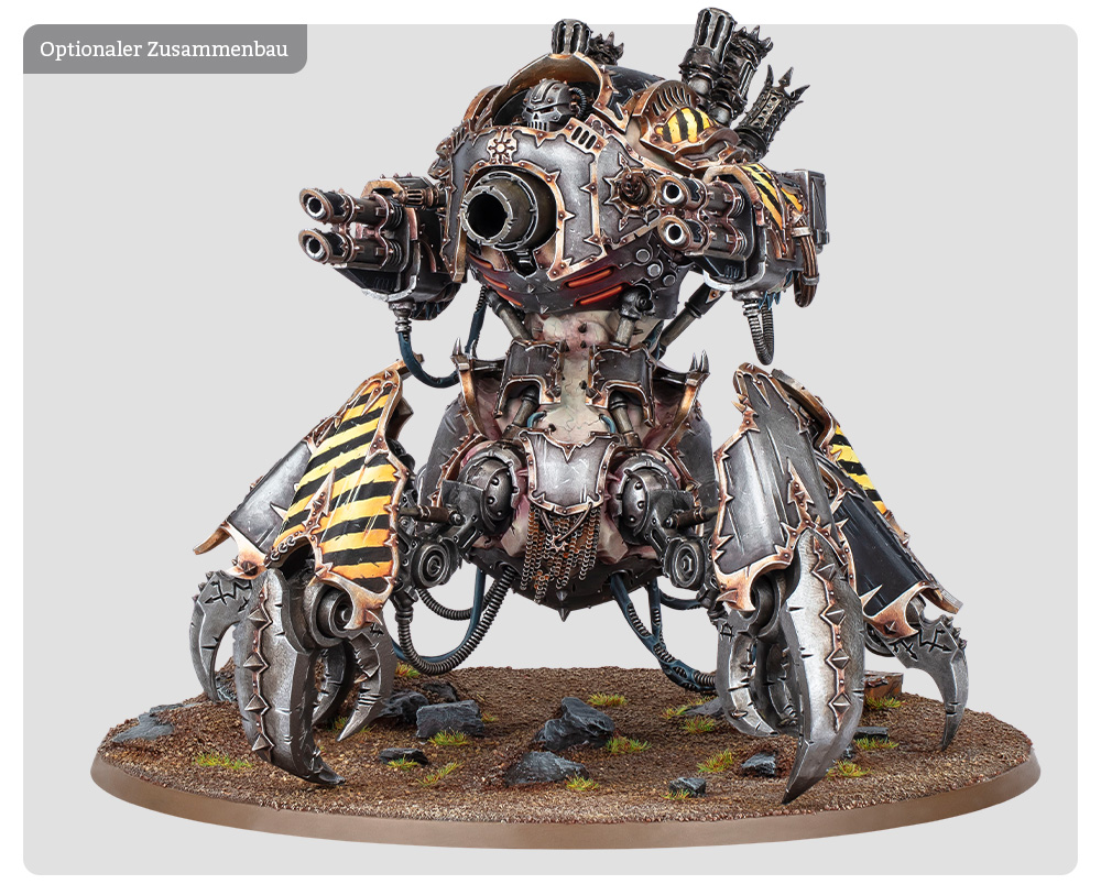 Beweise mit einem neuen Bataillonsset voller Ritterlichkeit die Macht der Ritterwelten mit einer ihrer zerstörerischsten Waffen: der allmächtigen Donnerspulenharpune. Der riesige Kampfanzug des Dominus-Schemas kann entweder als Harpunen schwingender Breschenritter oder eher auf lange Reichweiten ausgelegter Kastellanritter gebaut werden. Die beiden Knappen können entweder als nahkampfstarke Schwertknappen oder fernkampftaugliche Speerknappen gebaut werden. Das neue Kontingent Freiklingenkompanie aus Auge des Schreckens: Herrschaft des Eisens gibt dir neue Möglichkeiten, dieses Bataillon auf dem Schlachtfeld einzusetzen.