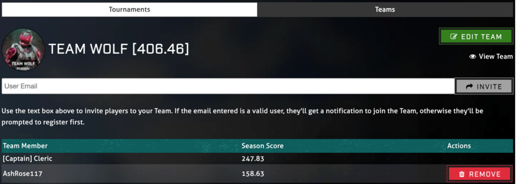 Each player can only be part of one team – and if you create a team, you are the captain of that team, which enables you to add and remove people from the team