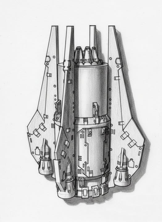 -bottom braking engine-top directional engine-wider cargo bay hatch-4 doors-4 corrective thruster wings