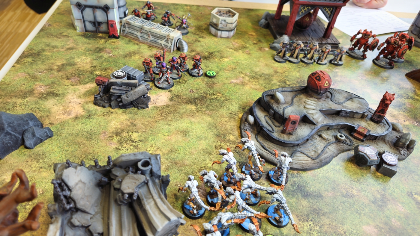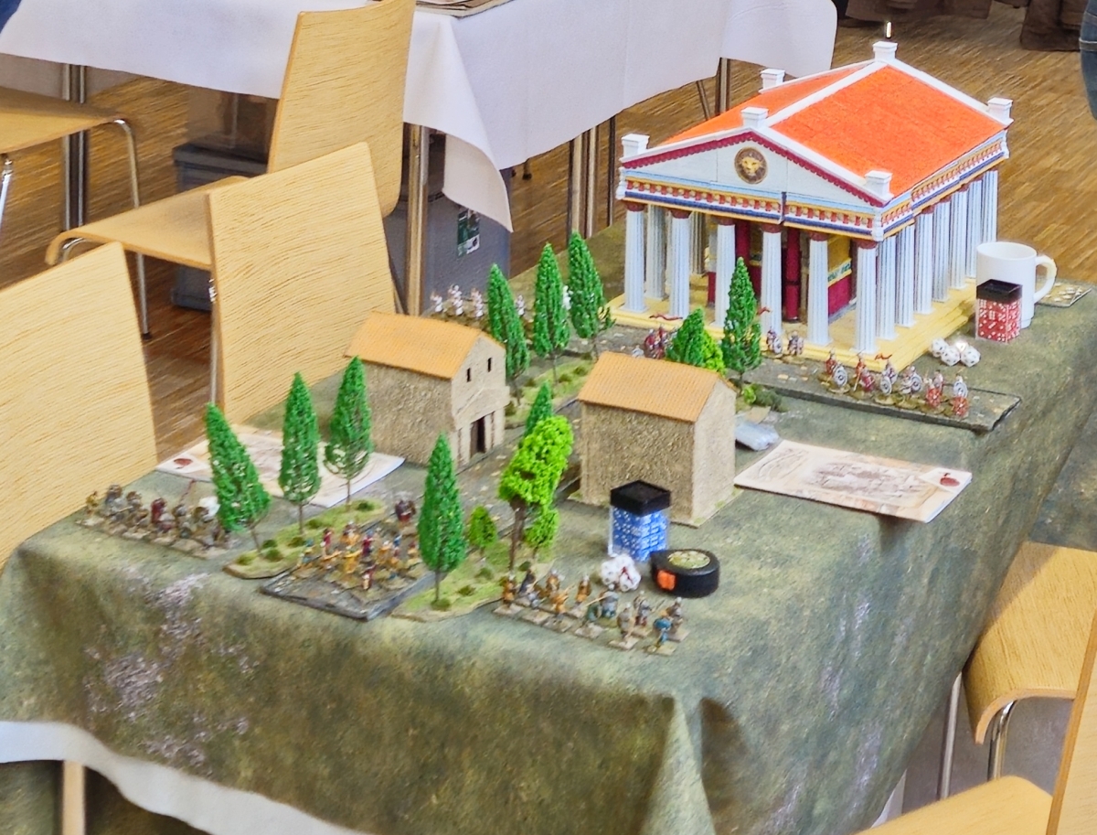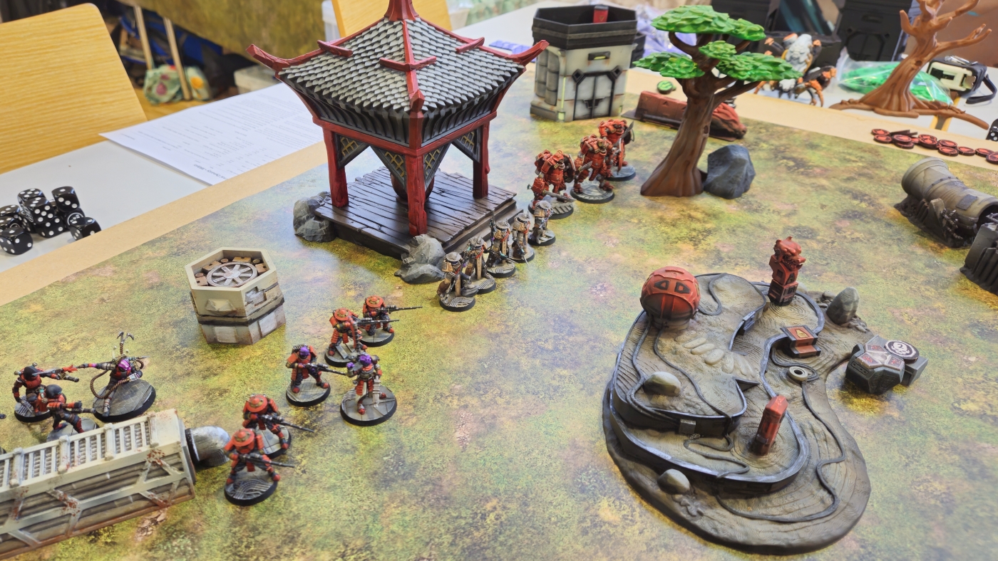 Und hier auch ein paar Bilder von meinem Tisch mit One Page Rules, in freundlichen Kooperation mit HBS Print-2-Play. Einige der Gebäude wurden mir zur Verfügung gestellt, um die Qualität des Drucks präsentieren zu können.