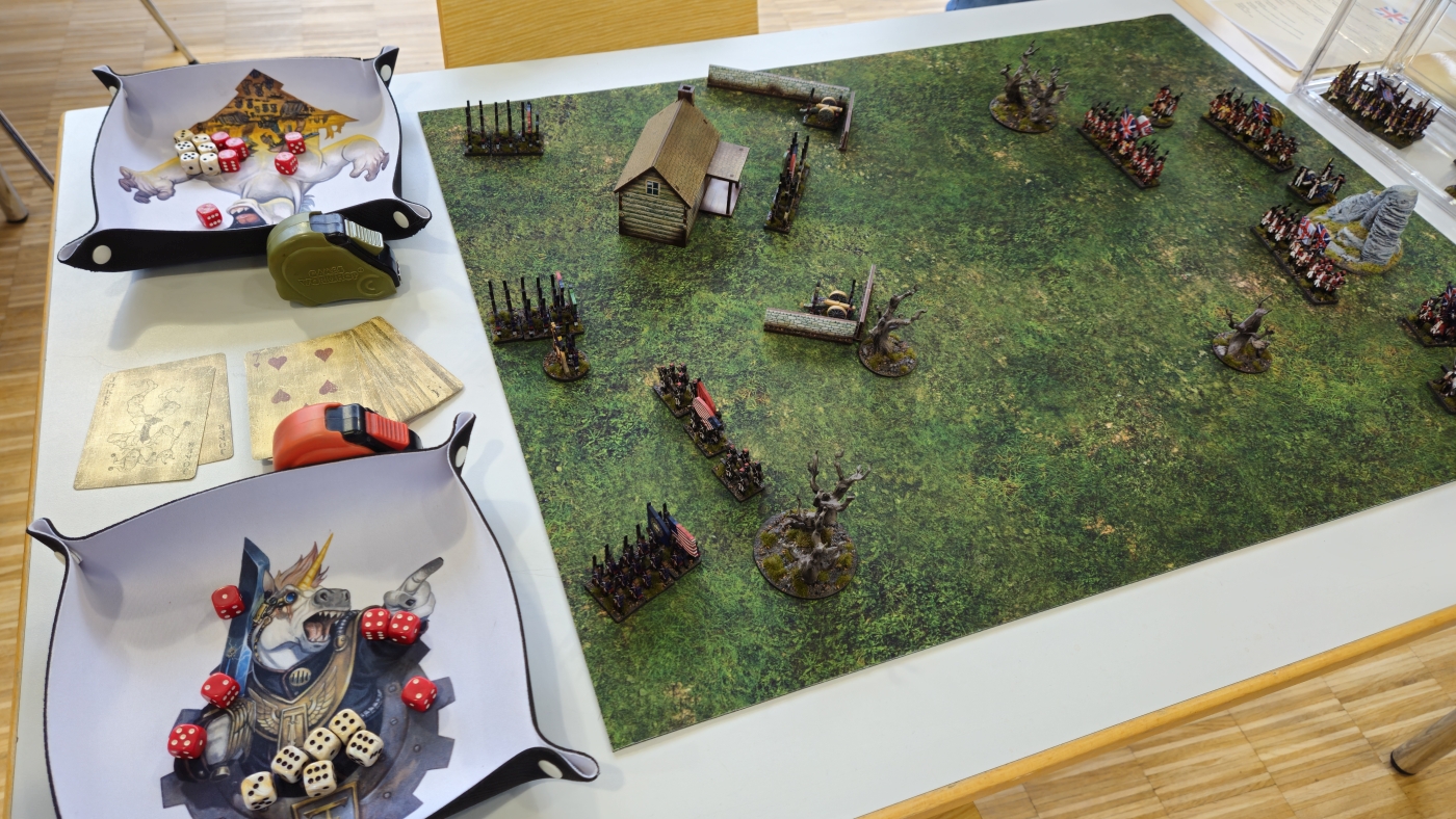 Wieder einmal war der Treffpunkt La Vie in Gievenbeck und wieder einmal war es ein schönes Event. So viel kann ich schonmal vorweg nehmen. Da ich diesmal mit einem eigenen Tisch vor Ort war, darauf Demospiele zu One Page Rules anbot, und auch meine eigenen Kreationen präsentieren wollte, kam ich leider nicht dazu viel mit den anderen Ausstellern zu reden.
