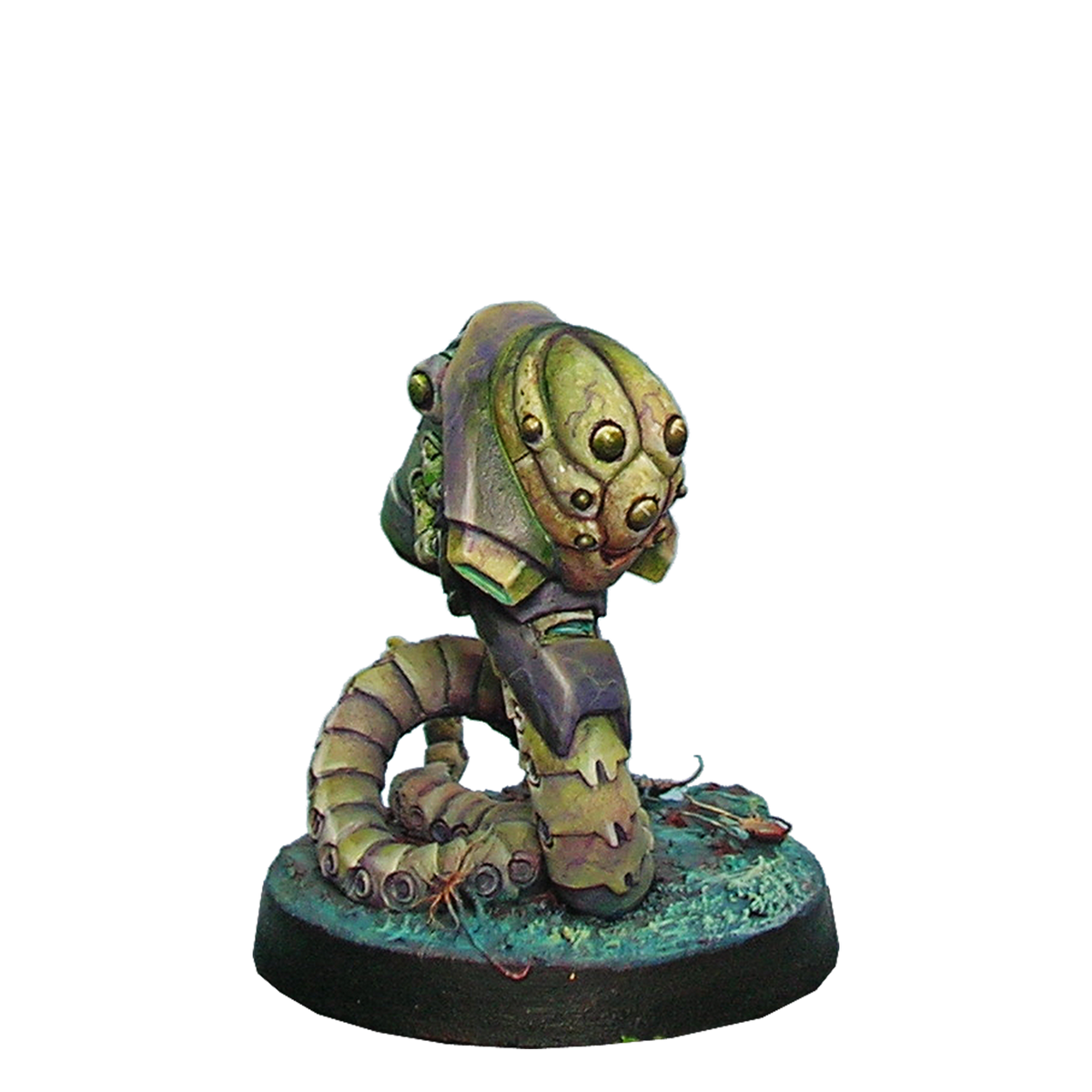three metal miniatures: a Med-Tech and two Slave Drones. Doctor and Engineer in