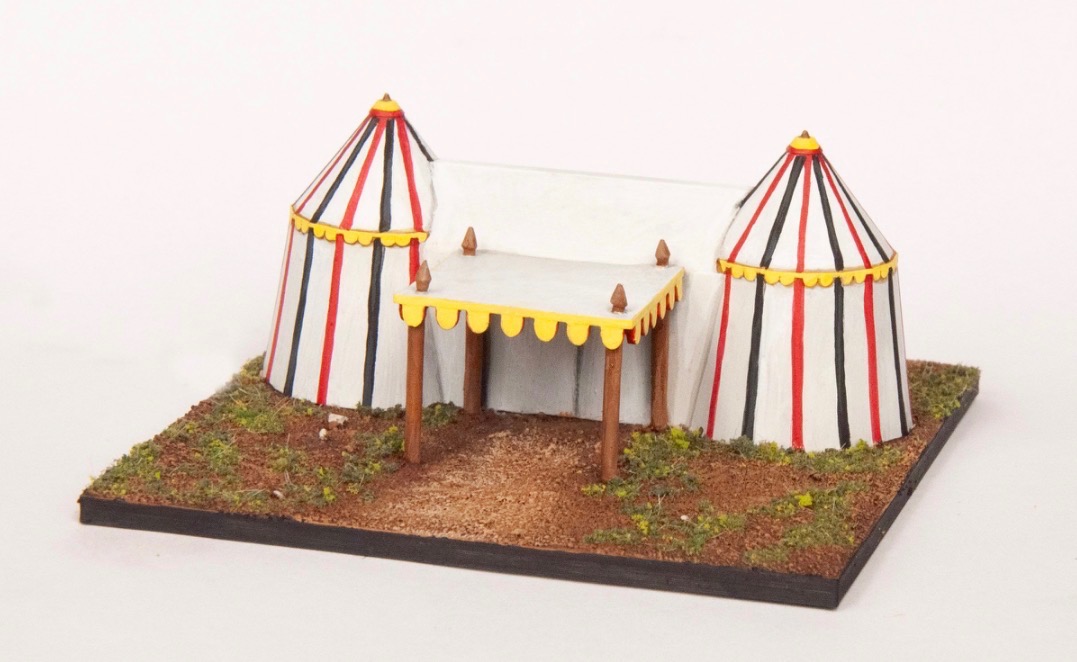 I think some of you guys are two tents!Pun!Here are indeed two 15mm tents we will be releasing in the next few weeks. One is a two-chambered tent for a king or a member of the high nobility in Medieval Europe, the other is a Japanese pavilion that can be used from at least the Ritsuryo period on (and perhaps earlier).The Japanese one isn’t strictly a tent, but an overhead canopy which was commonly screened on up to four sides and presented a very tent-like appearance.They’re big, both 80mm long. The Japanese pavilion would be perfect for any samurai army and is on a 40x80mm base. The European two-chambered tent is on an 80×80 because of the awning but that can be left off so it fits on a 40×80 base too. Coming soon!