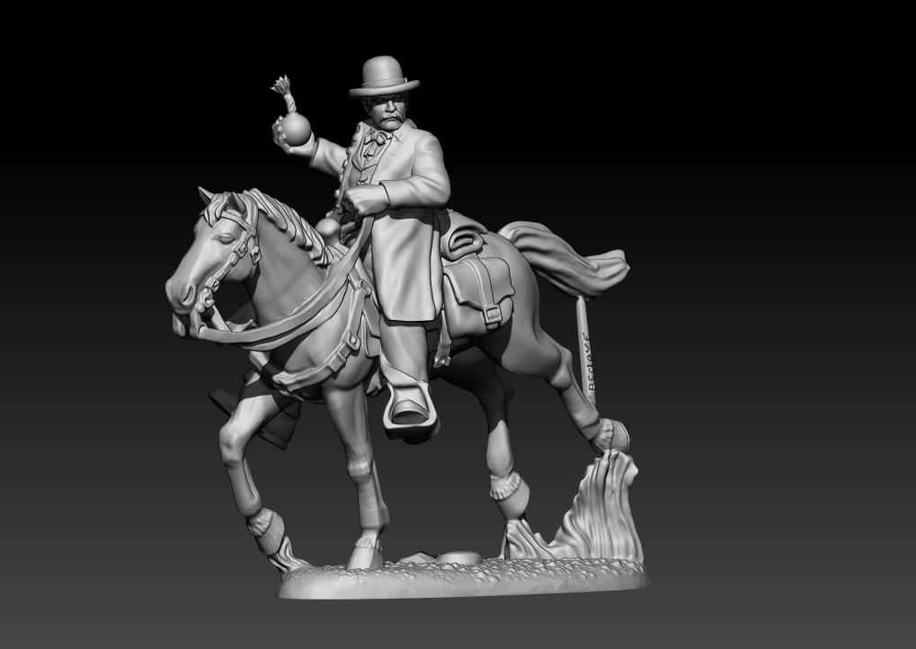 Number 4 of 6. The Pinkerton Bomber mounted. The rod from the tail to the rear hoof provides stability during transit and can be removed before painting.