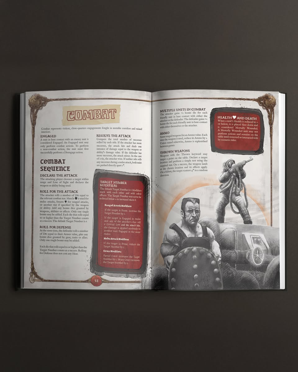 Black Site Studios zeigen Ausschnitte des Regelbuchs und ein paar Astronauten.
