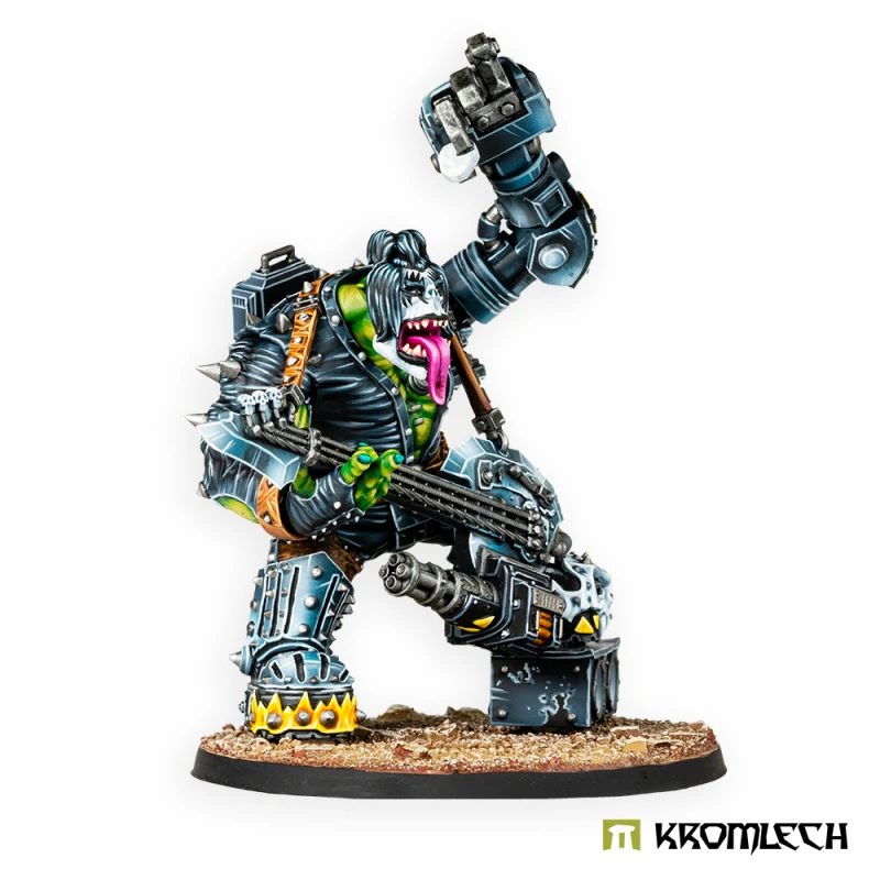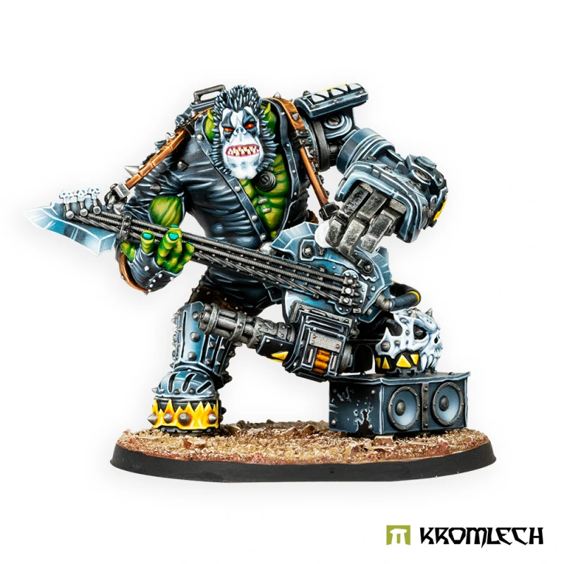 Just like in the other Greenskin hordes, the biggest among Orc Rokkerboys are natural leaders. The reason behind this might distinguish this tribe from other ones. Leadership doesn’t come with bigger muscles, but with bigger lungs, which allow Bosses to perform their „music“ louder.
