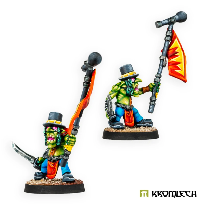 Big Boss Rokka is a true hero among all the Greenskins. He not only achieved greatness on the battlefields, decimating numerous formidable foes, but also on the ‚Eavy Metal Stages. His concerts are the most popular and capable of driving countless Orcs into frenzy in a matter of a couple of Guitar sounds. Of course, all of that wouldn’t be possible without his trusted servant and manager, Goblin Aerosmiffi.
