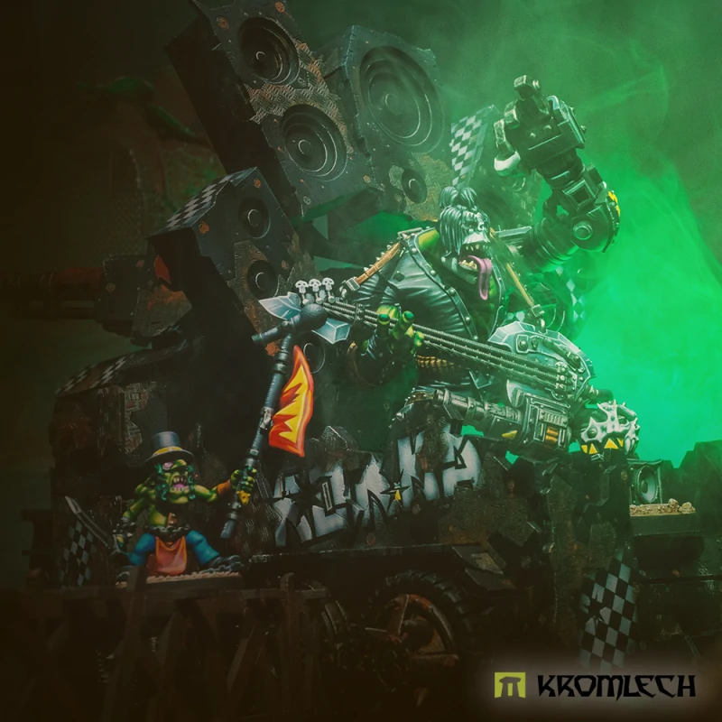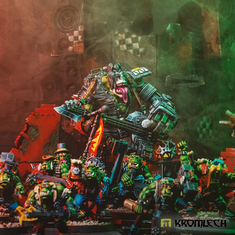 ZZ Orc Band is one of the most renowned among all Greenskin bands. The fact that they don’t lead any horde allows them to freely roam across the galaxy in their legendary Eliminator ZZ Orc Wagon. They always show up where the battle is the biggest and bloodiest, to support Orcish brothers with their „music“ and guns.