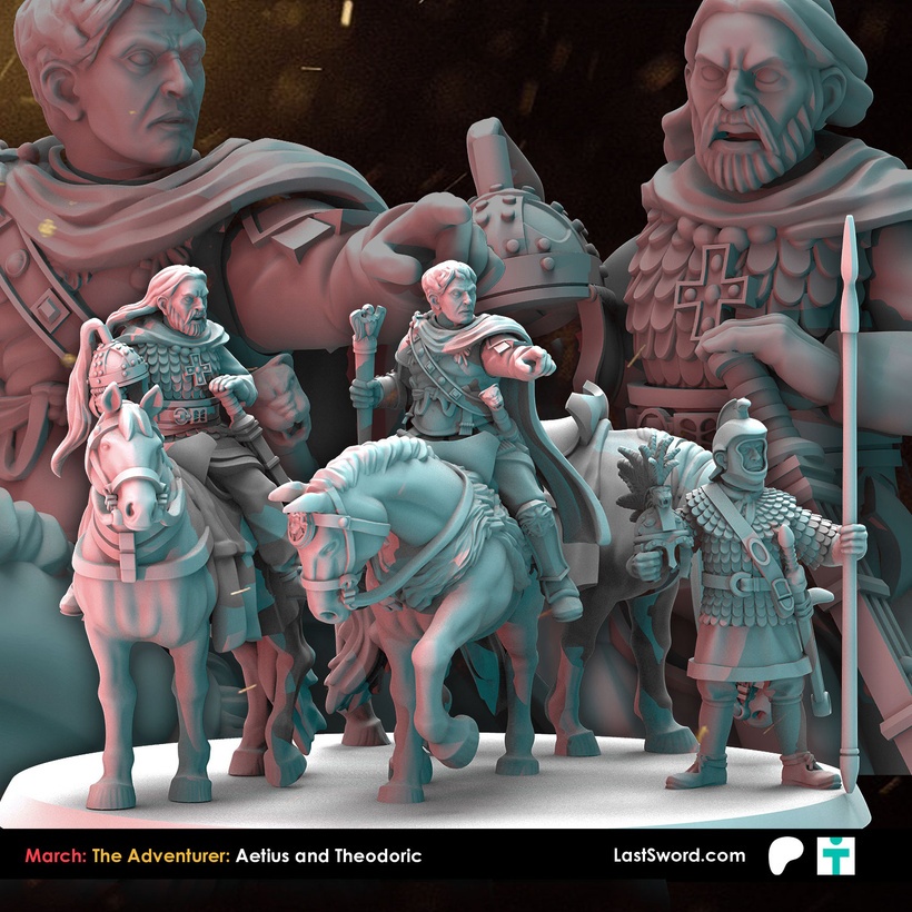 Aetius and Theodoric (HQ) More than a command set, this is a political vignette. It represents the tension of a forced alliance between the last great Roman and the Visigoth king. We designed these miniatures to function as the narrative center of gravity for your collection: they aren’t just generals shouting orders; they are the architects of the Catalaunian Plains. They bring the gravity and hierarchy that every great army needs presiding over the table.