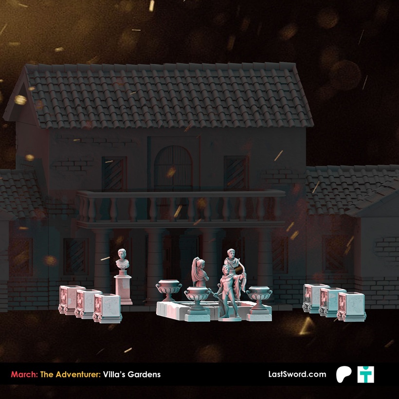 Villa’s Gardens (Scenery) In a wargame, peace is the best contrast. These pieces aren’t just cover; they are the narrative of what is being protected. Classical statues and fountains representing civilization, ideal for creating scenarios where the fight feels like the desecration of a sacred, ordered space.