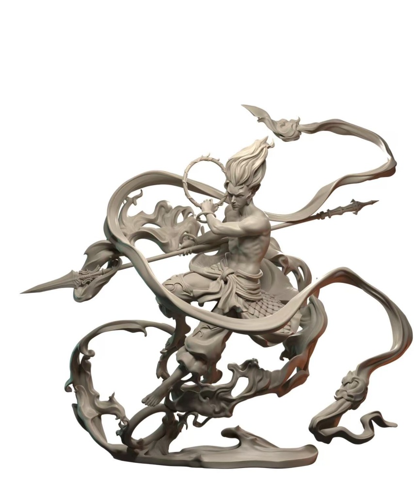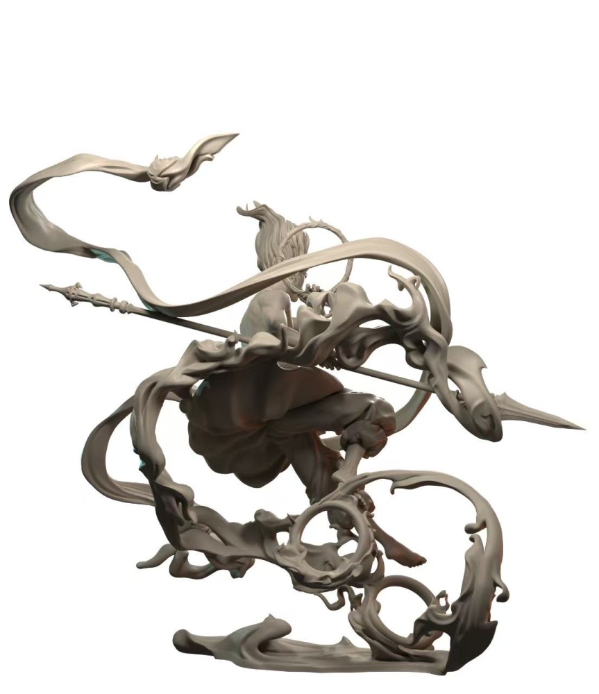 Sculpted by Joaquin PalaciosNezha was born from a divine lotus and destined for turmoil, a child of heaven whose fiery spirit defied the will of gods and dragons alike. In his youth, he challenged the Dragon Kings of the seas, bringing calamity upon his family. To atone for his fate, Nezha sacrificed his own flesh and blood, only to be reborn through sacred flames — a warrior forged by death and rebirth. Armed with his blazing spear and riding upon the Wind Fire Wheels, he becomes the embodiment of rebellion and renewal.