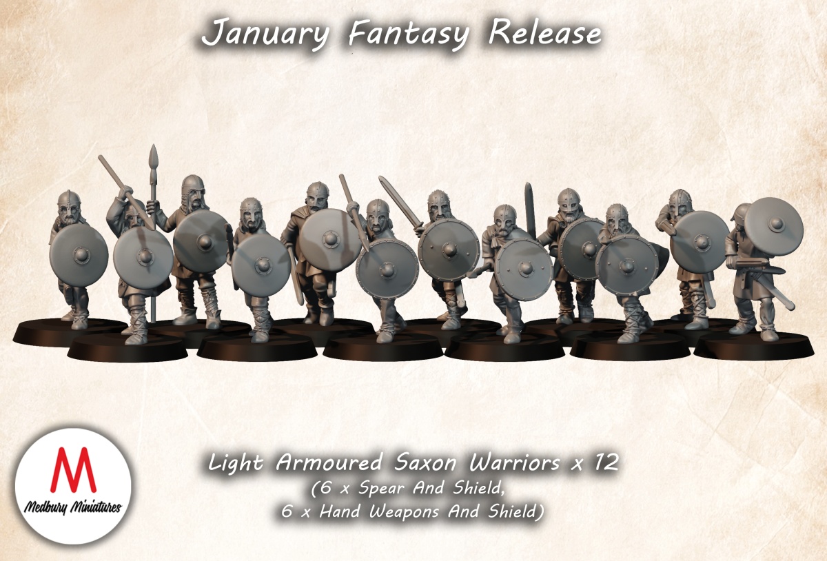 the goal with this new range is to connect the dots between the vendel range (550AD-750AD) up with the later medievals. so this range will cover. 750-1300 which is a huge stretch of time, so thats saxons/normans/ then early crusades and early medieval. the intial wave of releases will cover the saxon side, and we will work through a couple of packs at a time until we have covered all the units and load outs, so after this you can expect at some stage to see more sword/board spear/shield with no helmets, and then again, with helmets and chainmail, (combined that would give you atleast 36 figures for your shield wall)