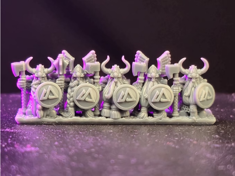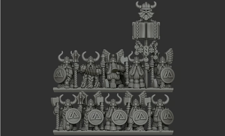 Elite Norse Dwarf veteran units for grand scale mass battle game systems, provided as detailed, 3D-printable STL files.