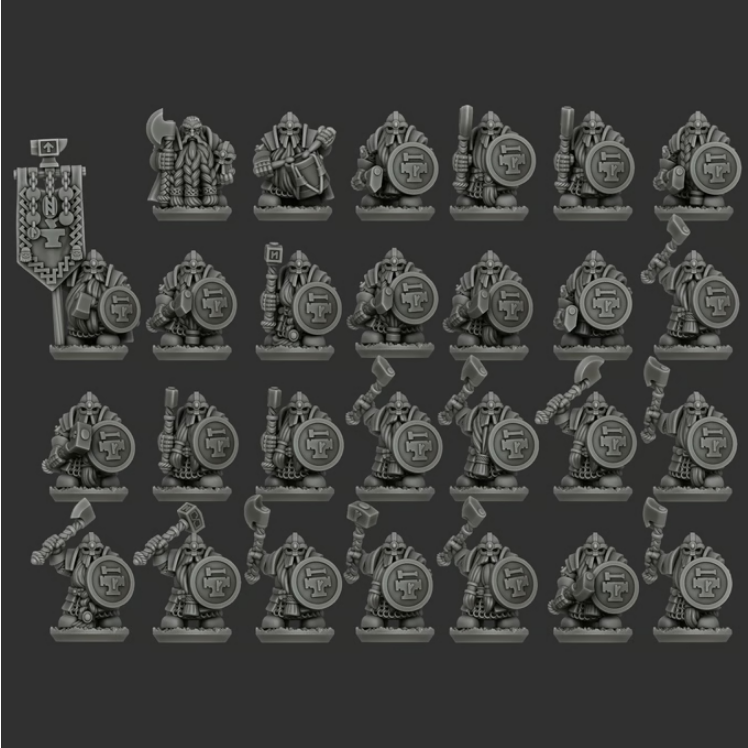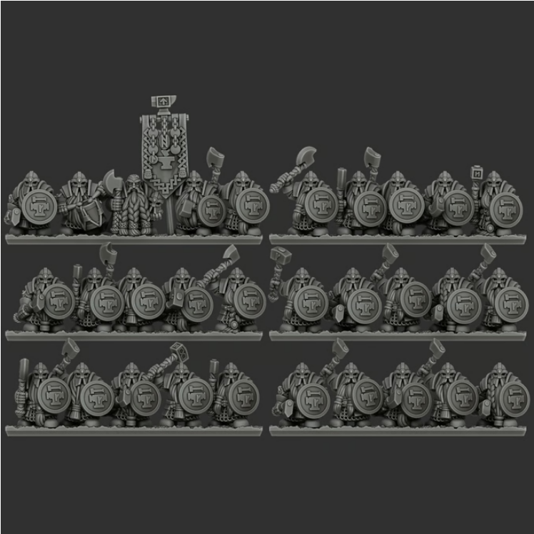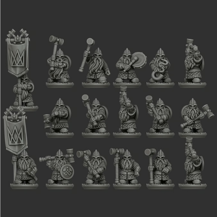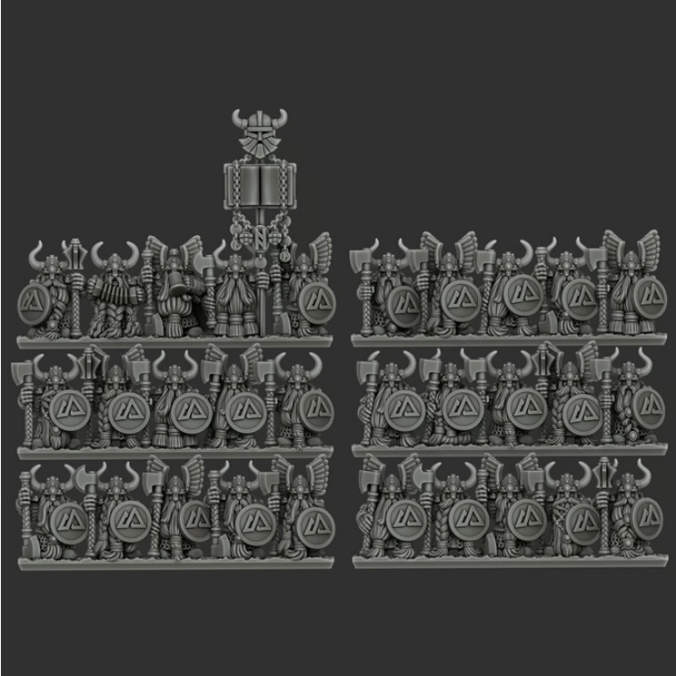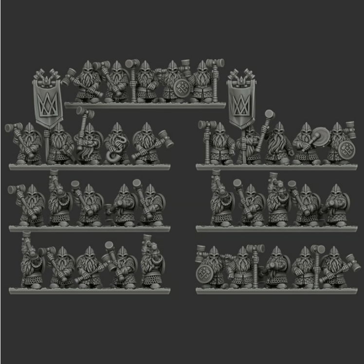 This campaign expands upon the previously released Norse Dwarf Clans range by introducing veteran and elite formations that represent the hardened core of a seasoned Dwarf host. The new units included in this project are the Anvil Guard, Greybeards, and Jarl’s Hammers—warriors defined by heavy armor, ancestral weapons, and years of battlefield experience. Together, they provide the backbone of a disciplined and resilient Dwarf force, equally suited for holding the line or delivering decisive counterblows.
