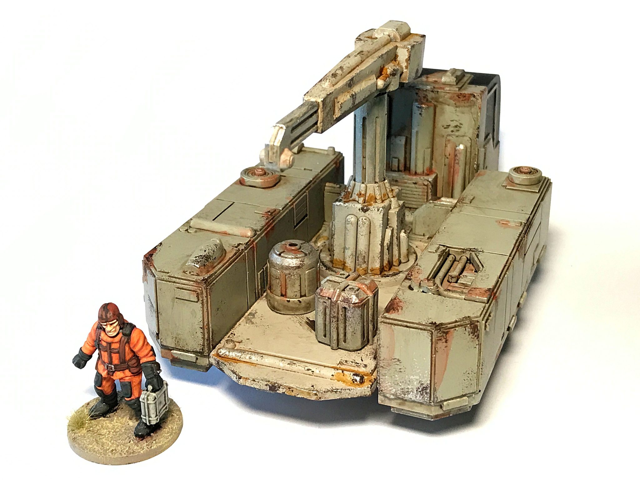 A simple anti-grav cargo skiff with the new crane as part of it (and two random small crates). It also fits on the back of SFV16 which is now an option for it