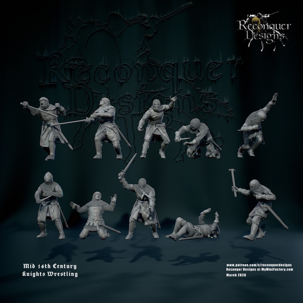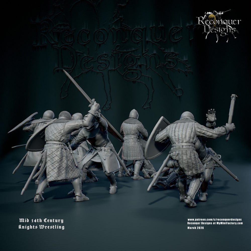 Hi everyone here is the full set of mid 14th c knights wrestling for March! They are labeled as sets so its easy to know which were designed to go together