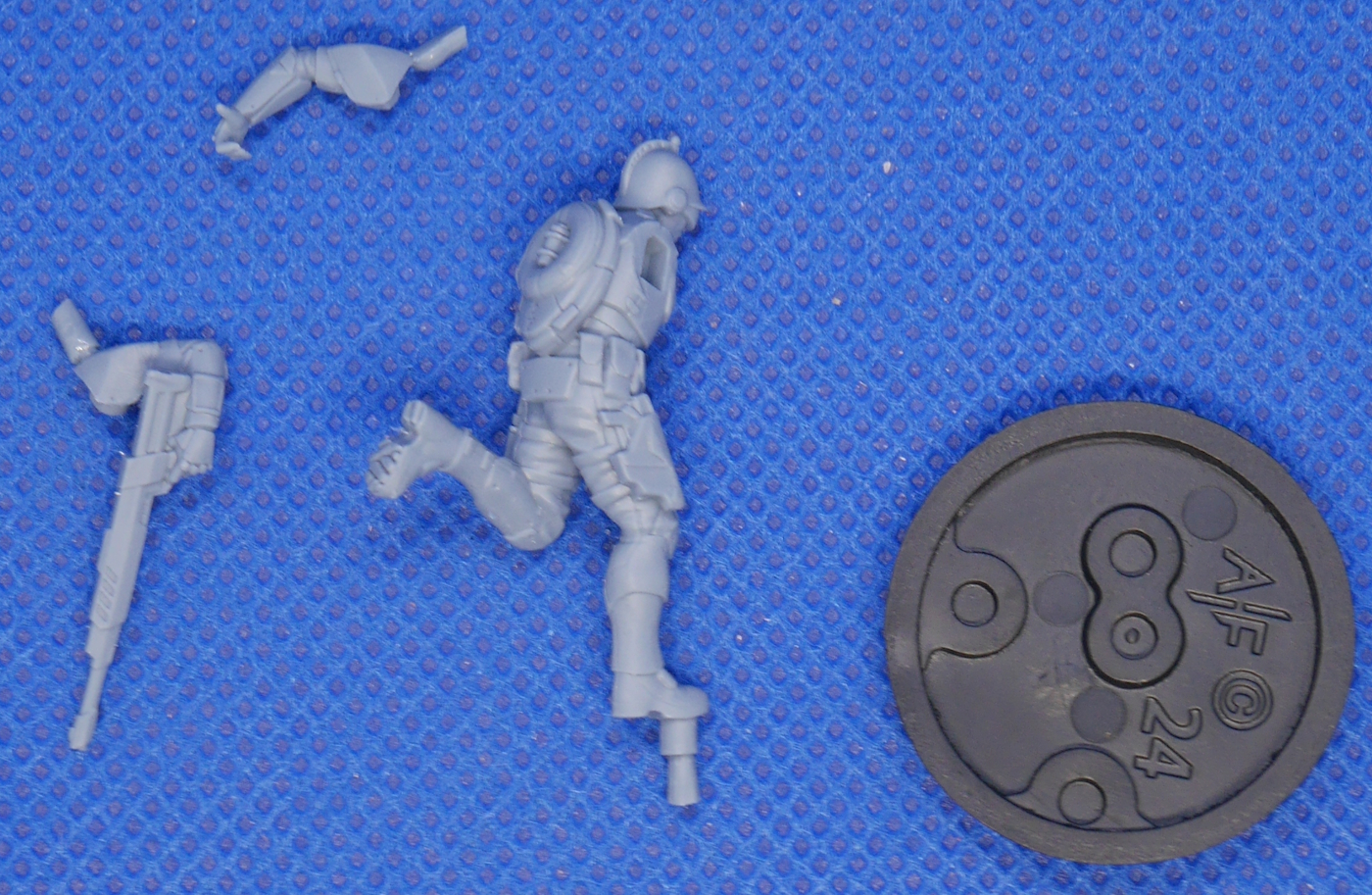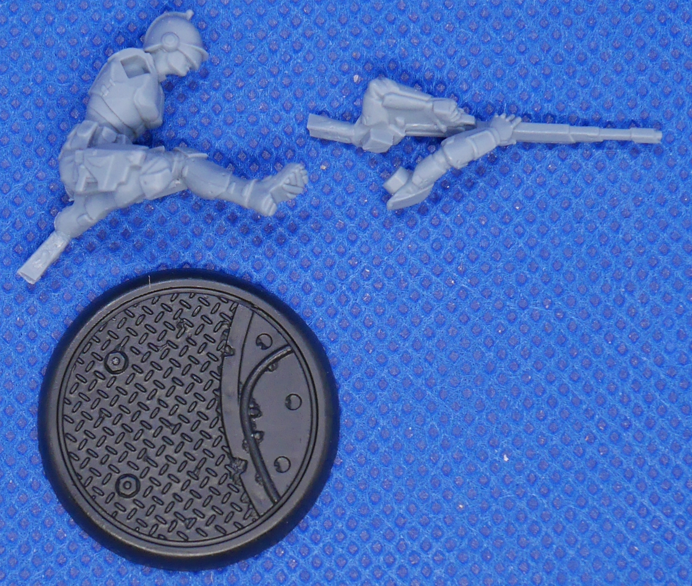 Die Marines bestehen aus einem, zwei und drei Einzelteilen. Leider ist bei meinem stehenden Marine der Gewehrlauf etwas schief gewesen und beim Versuch ihn geradezubiegen abgebrochen. Mit einem Tropfen Sekundenkleber konnte ich dies aber wieder leicht beheben. Außer diesem Lauf war die Gussqualität wieder sehr gut, die Angusspunkte gut gewählt.