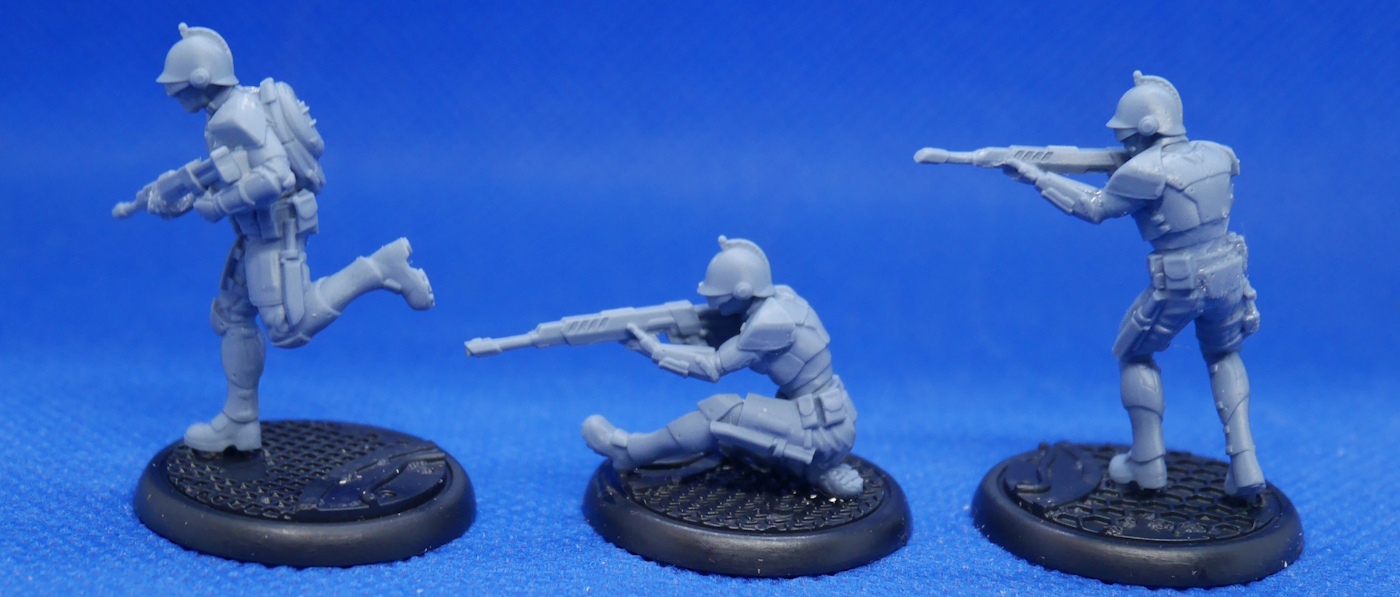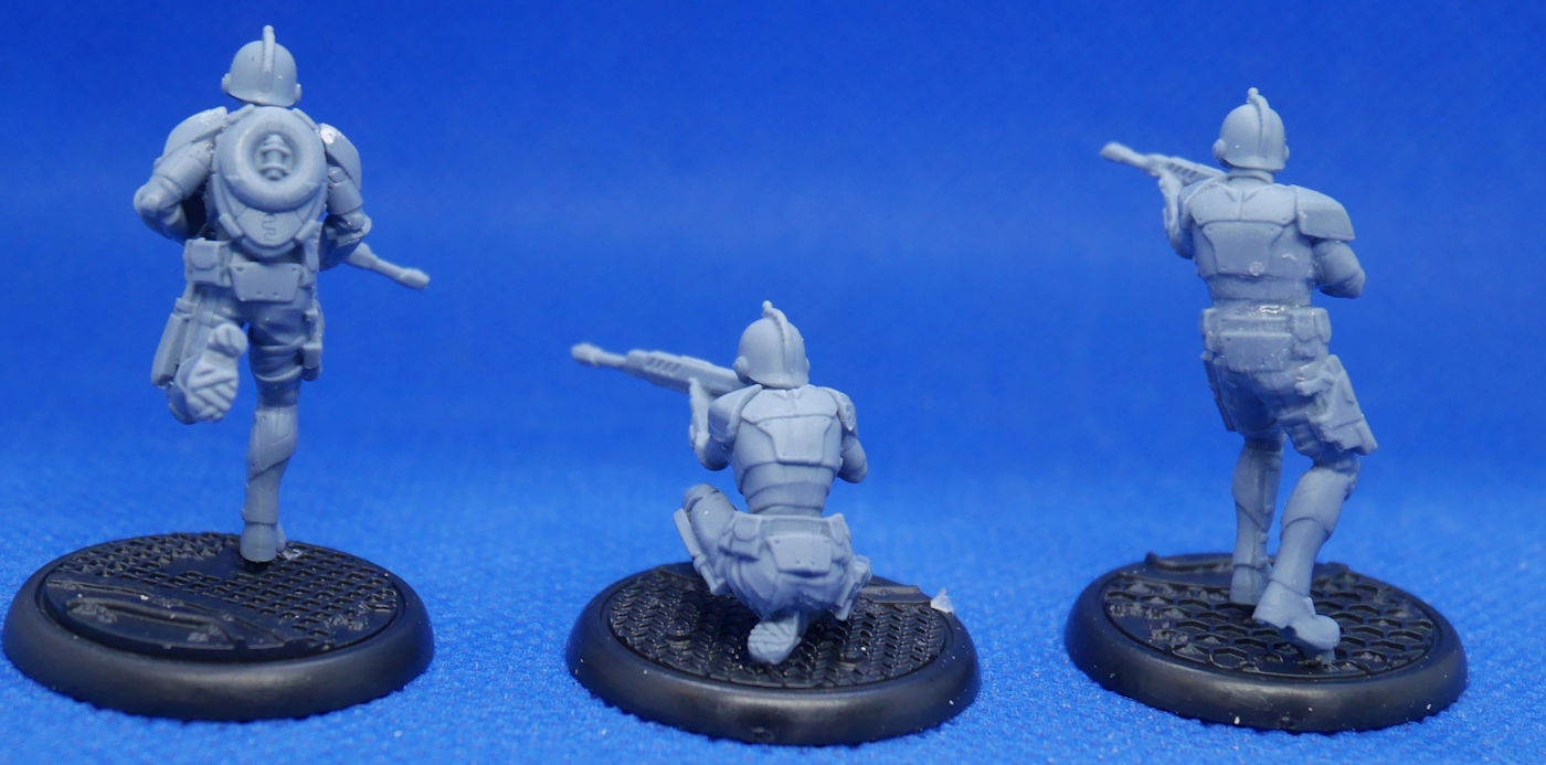 Bei den Modellen in dieser Box handelt es sich um die selben wie im Fraktionsstarter, eine Kadettin ist zweiteilig, die anderen beiden einteilig. Der Angusspunkt an der Mütze ist nicht ideal, lässt sich aber wegfeilen.