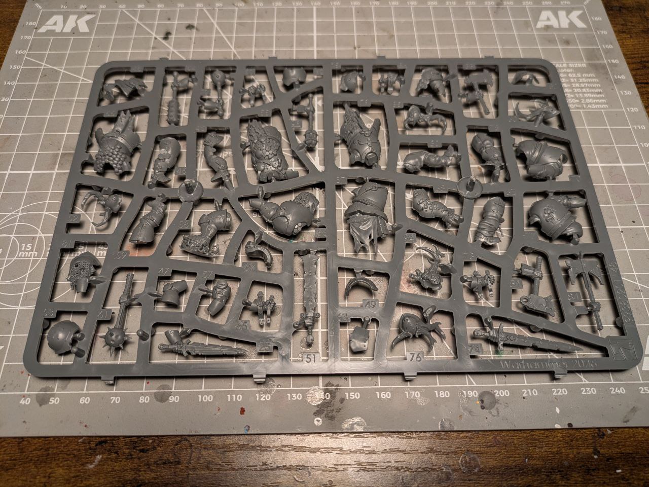 Einige kleine Haken gibt es allerdings doch: Die Helm-Optionen ähneln sich für meinen Geschmack zu sehr und es gibt nur zwei Köpfe ohne Helm. Dazu kommt, dass ie Arme nicht komplett austauschbar sind. Nicht jeder rechter Arm ist mit jeder rechten Waffenhand kombinierbar. Das alles hat dazu geführt, dass ich meinen Traum, meine Fäulnisschwerter ausschließlich ohne Helm und mit Hämmern, Streitkolben oder Morgensternen auszustatten, recht schnell aufgeben musste.
