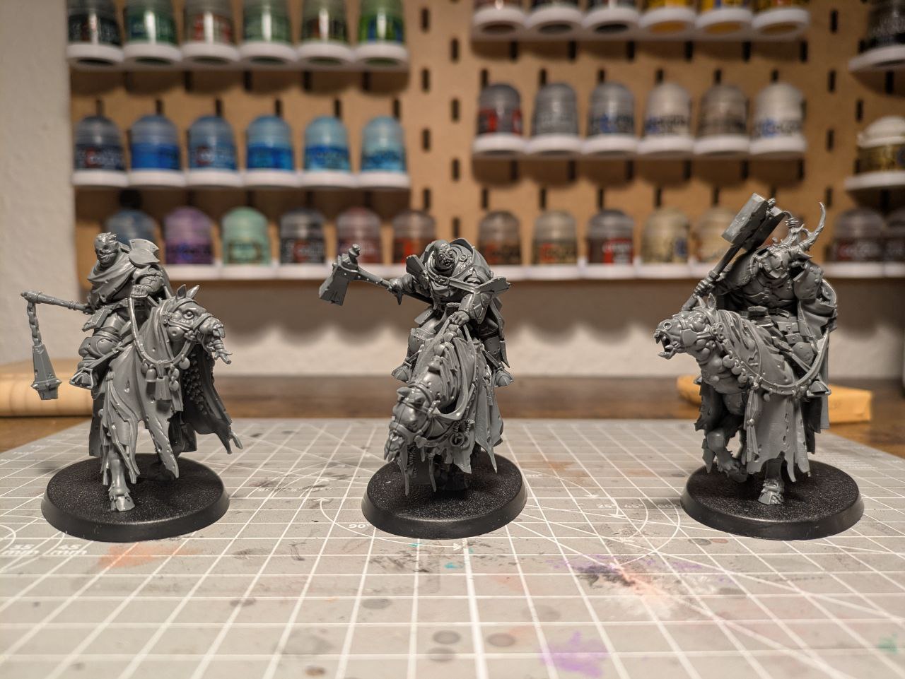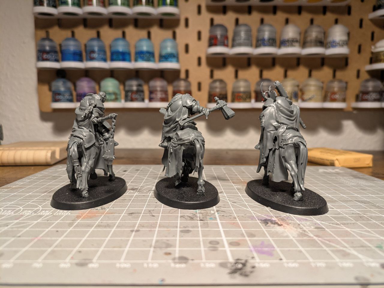 Vielen Dank für das gute und informative Review. Die Seuchenreiter scheinen wirklich riesig zu sein! Eine Frage hierzu: wie voluminös sind die? Oder anders gefragt, wäre es möglich alle drei auf ein großes Ovalbase (von Fliegern) als eine Art Lanzenformation zu kleben? Besten Dank & Gruß