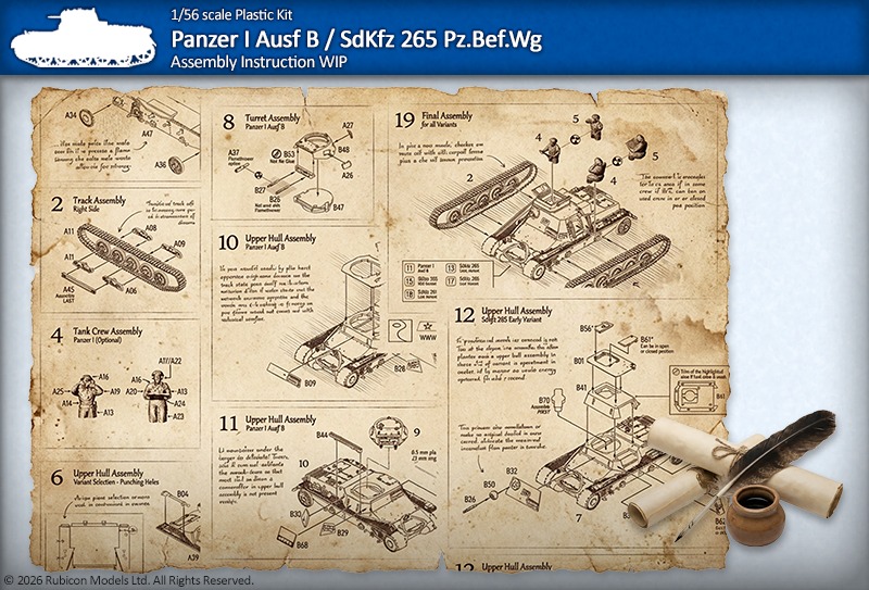 With the official approval of our Panzer I moulds, work has started on the box art design and the assembly instructions based on the final kit design.