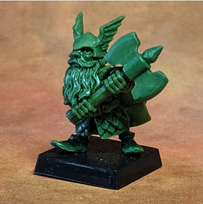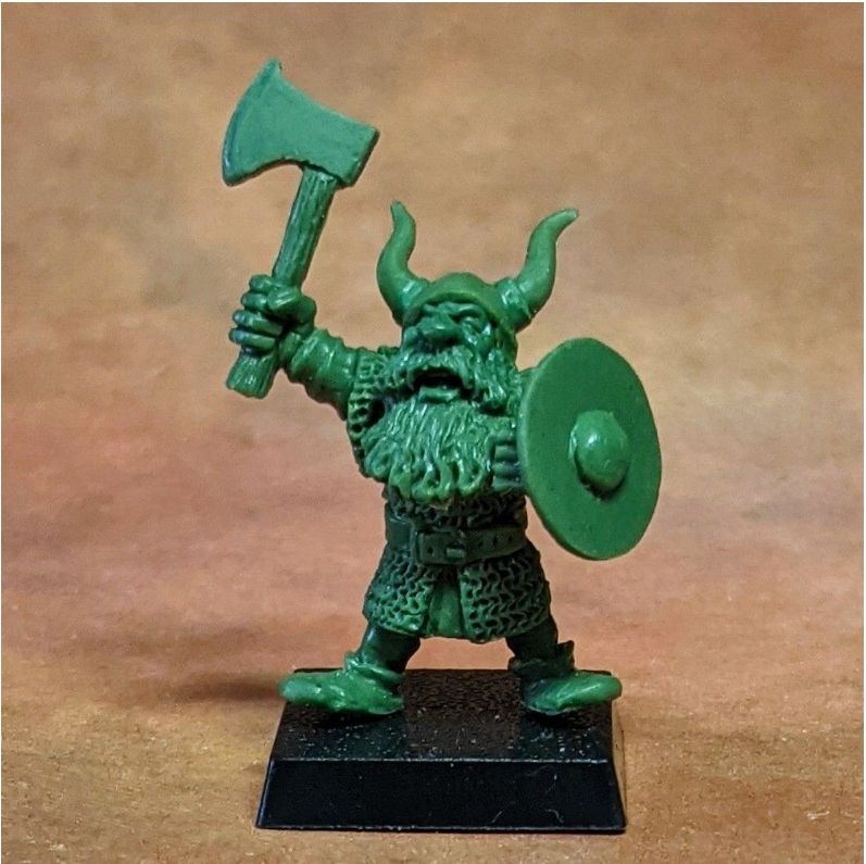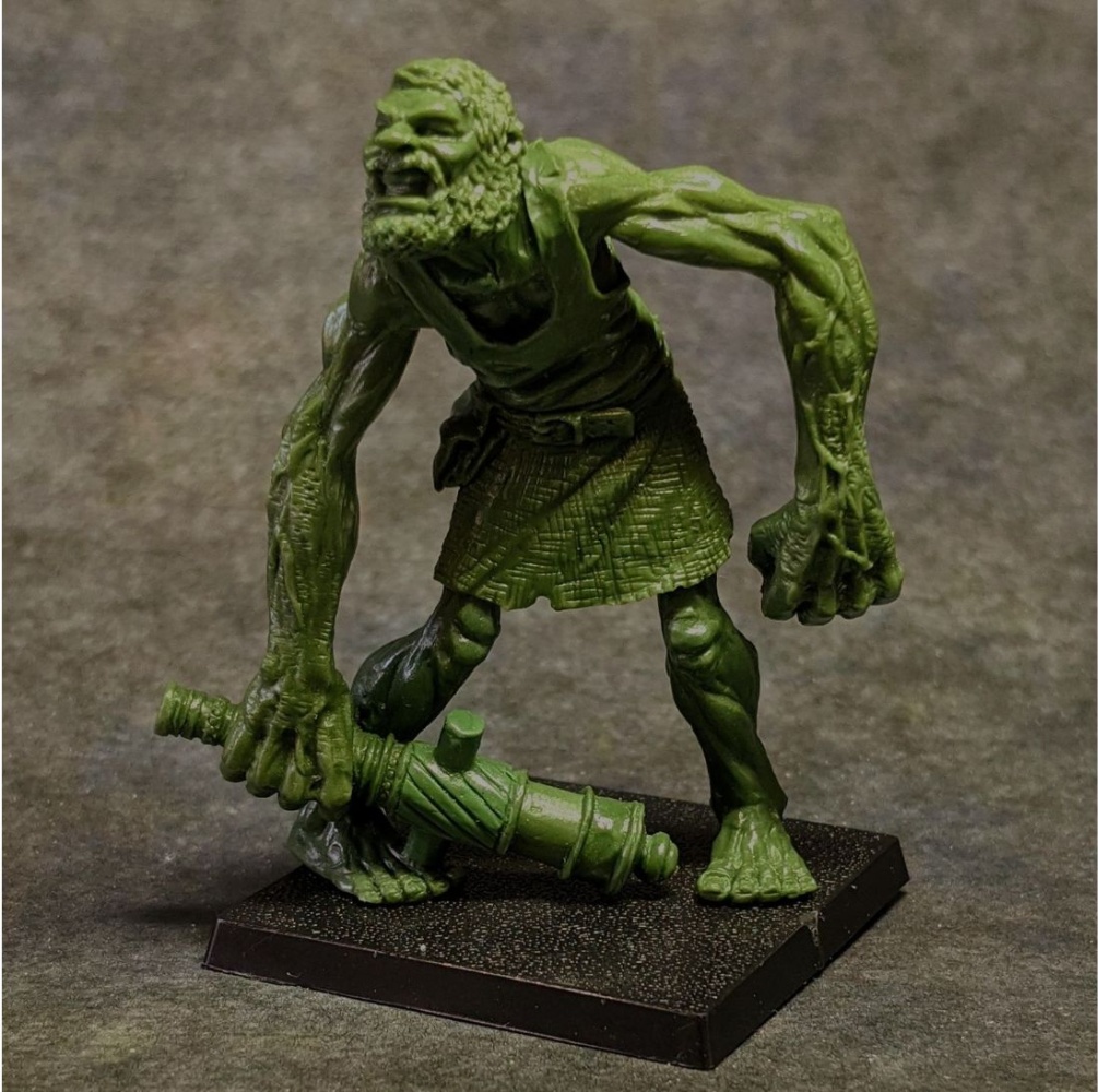 This is the Highland Giant, Dingers Durgan. He is armed with an improvised iron club, measure 55mm to the eye, and is 2.33 oz of METAL.