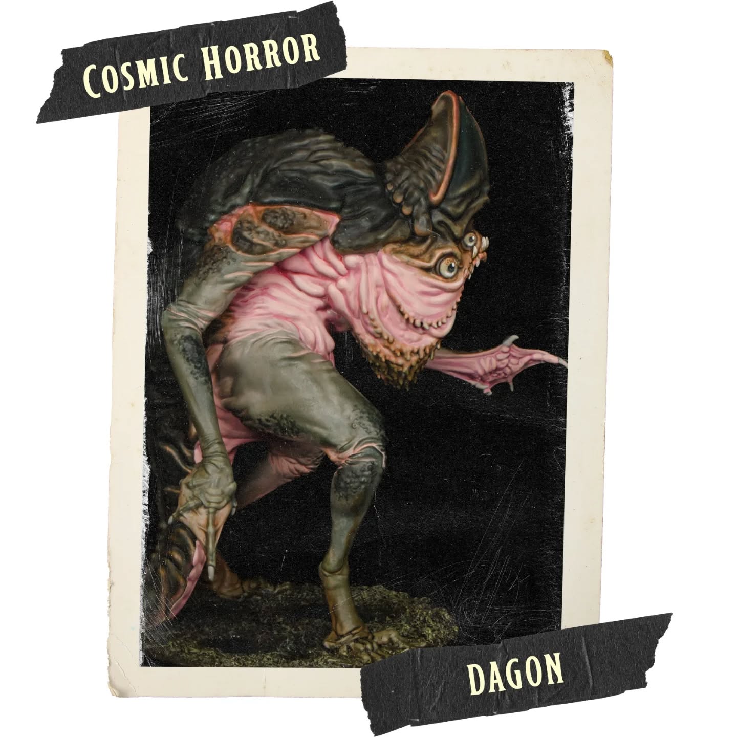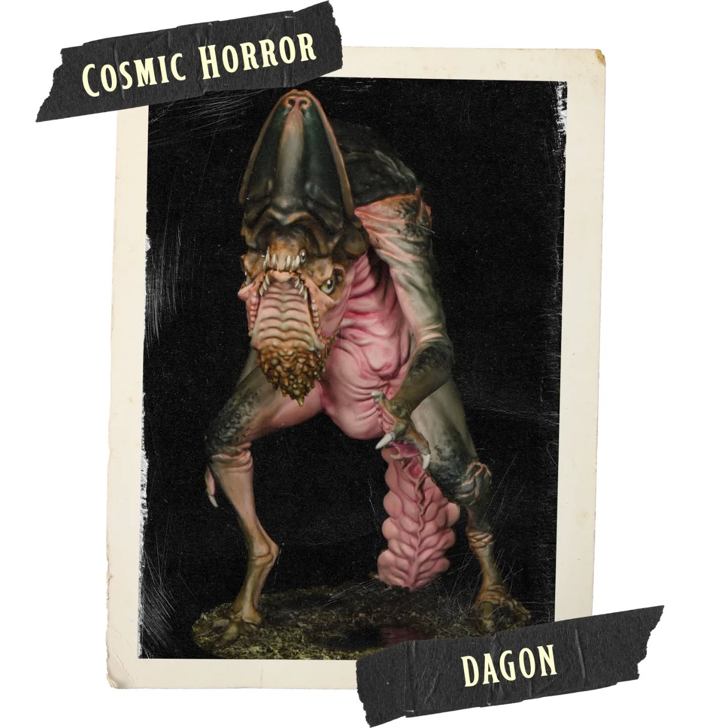 Dagon is worshipped by those who survived the Innsmouth cleansing. You can expect to see a full range of deep ones and hybrids alongside their God.