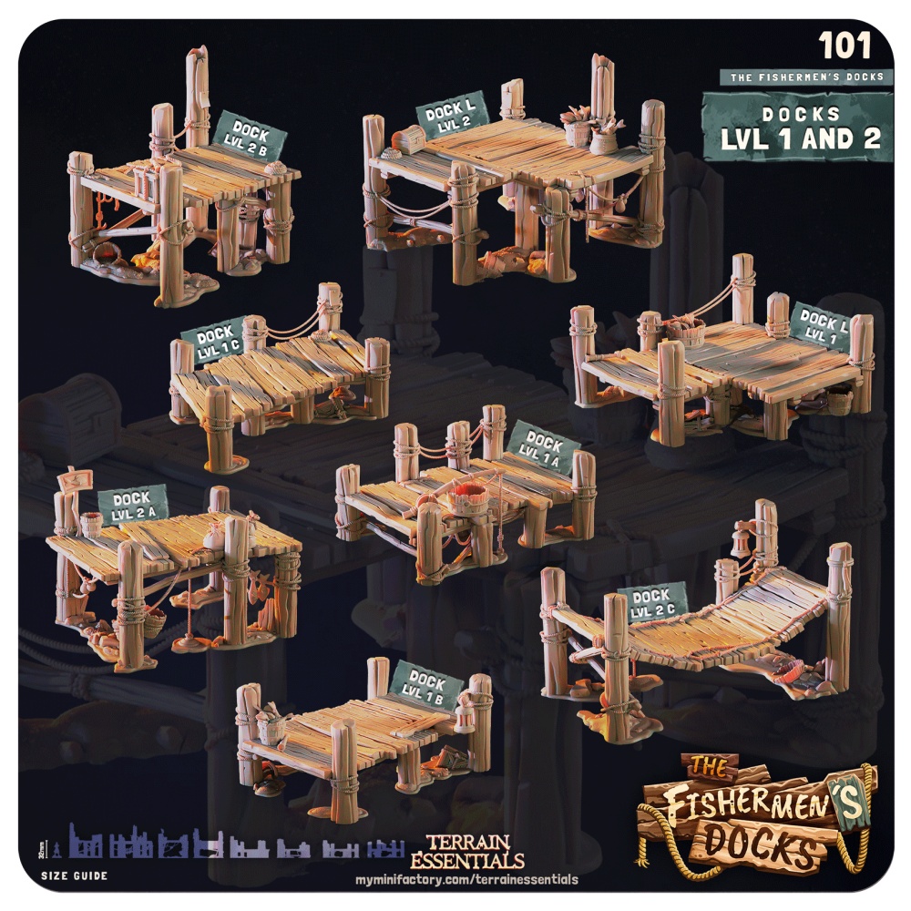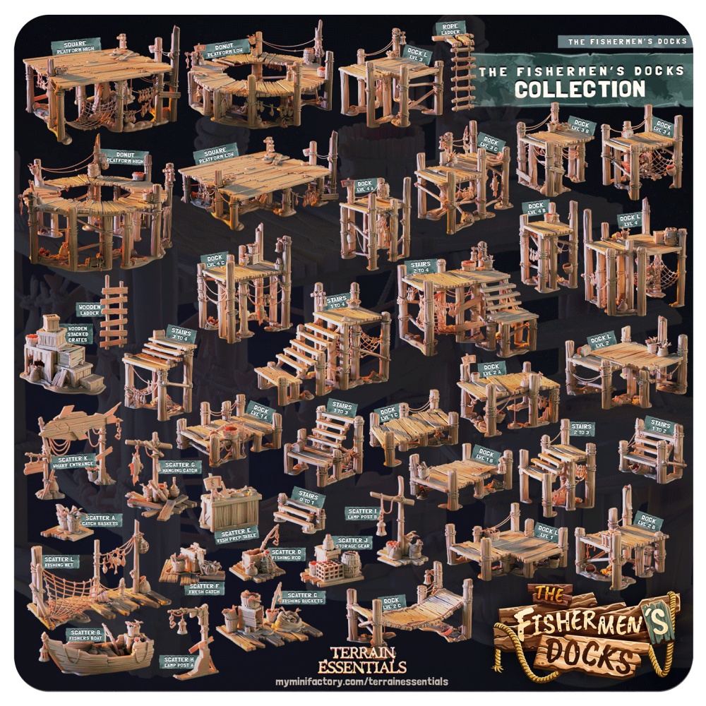 The Fishermen’s Docks is our largest collection to date, featuring 41 highly detailed printable terrain models.