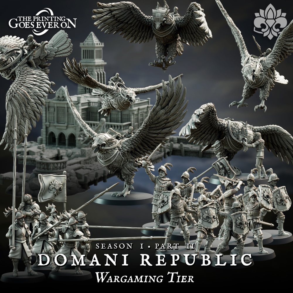 The Republic is organizing. We introduce the Vulturarii, an aerial unit capable of vertical envelopment, and the Pikemen, a solid wall of steel to hold the line. We are also introducing a new DIY Pike System for durability!