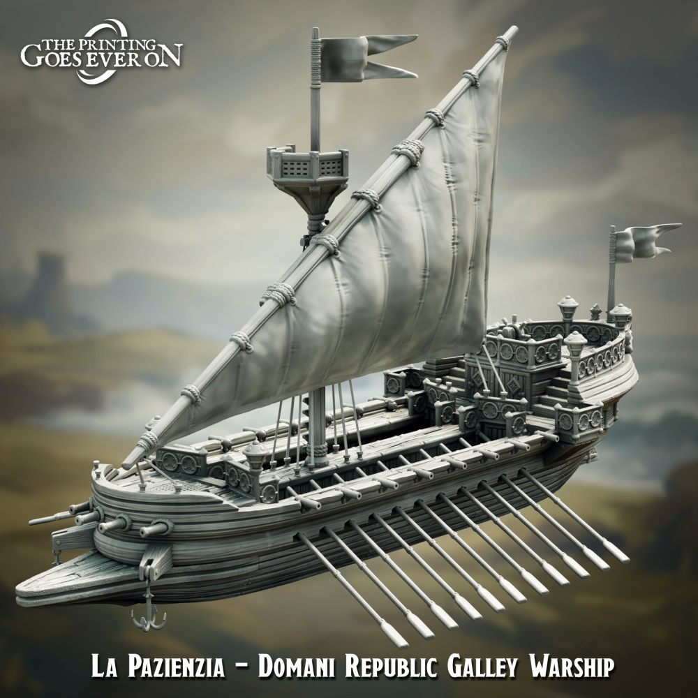 - Domani Galley: A massive playable ship with a hull interior. Includes 3d printable sails and a DIY variant for custom rigging.