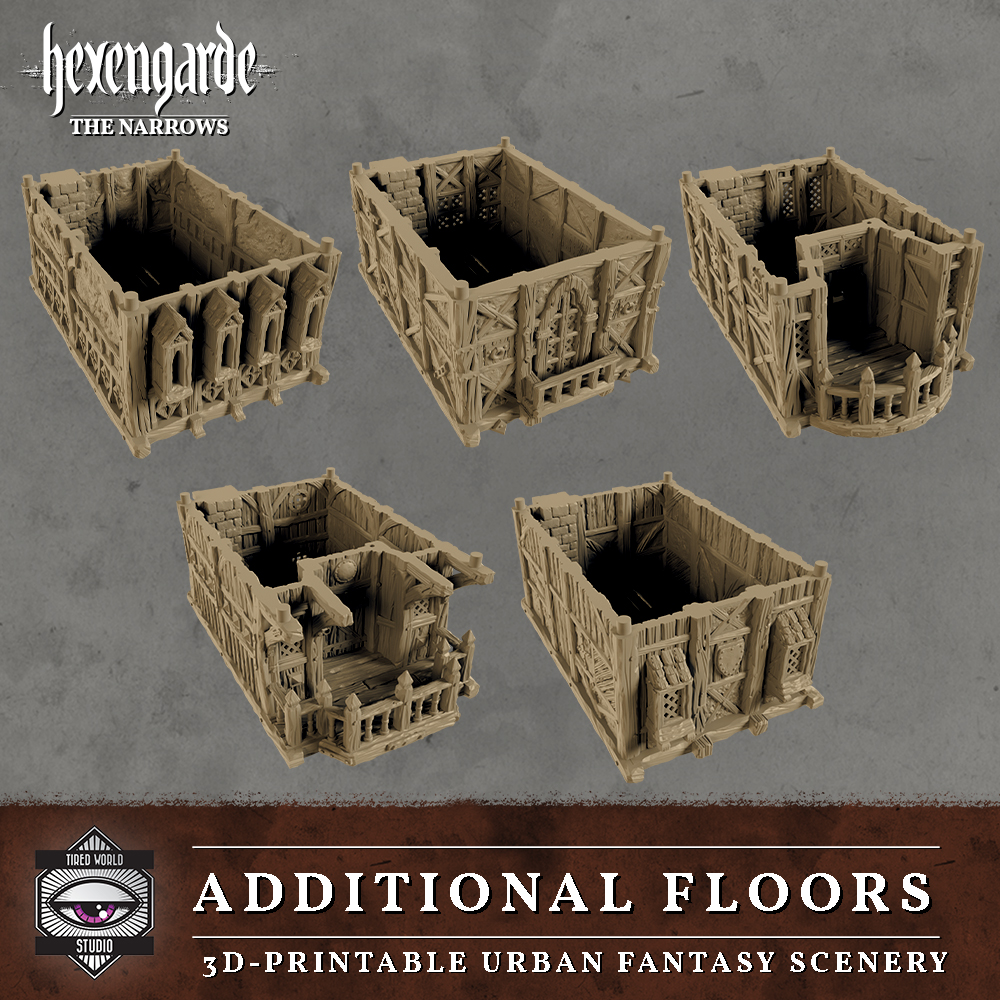 These kits add considerably more options to the Narrows system of buildings, giving 5 new floors to help build your rowhouses taller and taller.