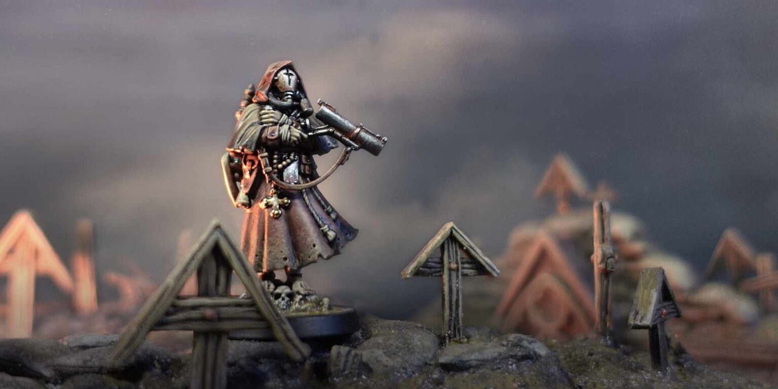 The Sniper Priests of New Antioch are the undisputed masters of long range warfare. Ritually blinding themselves to avoid any chance of doubt, a Sniper Priest aims through faith in the Lord alone, enabling unparalleled accuracy whether they be firing a sniper rifle, heavy automatic weapon, or even a grenade launcher.