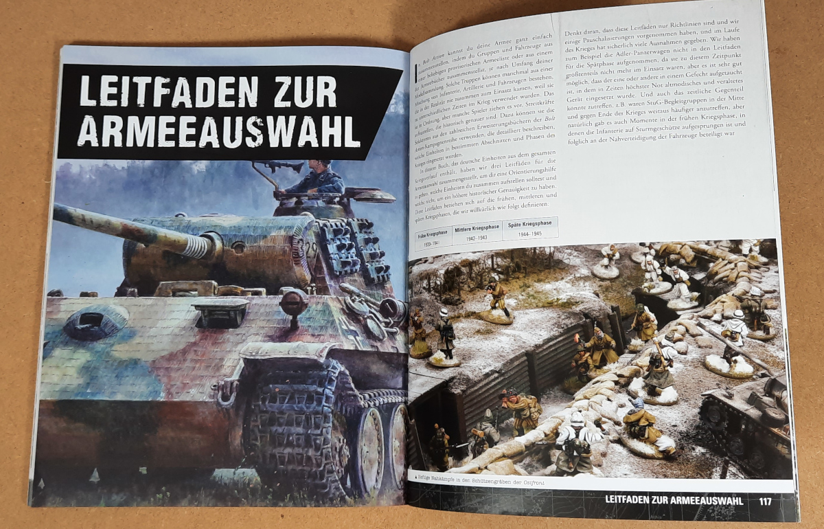 Heute schauen wir uns kurz das neue Armee Buch Deutschland auf Deutsch für Bolt Action an.