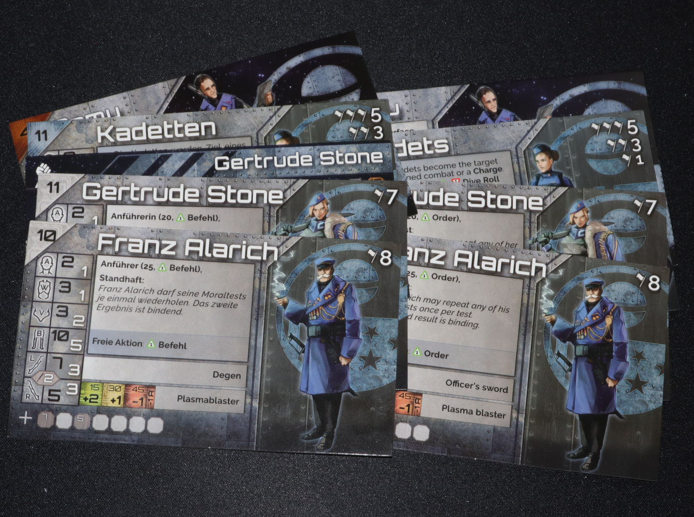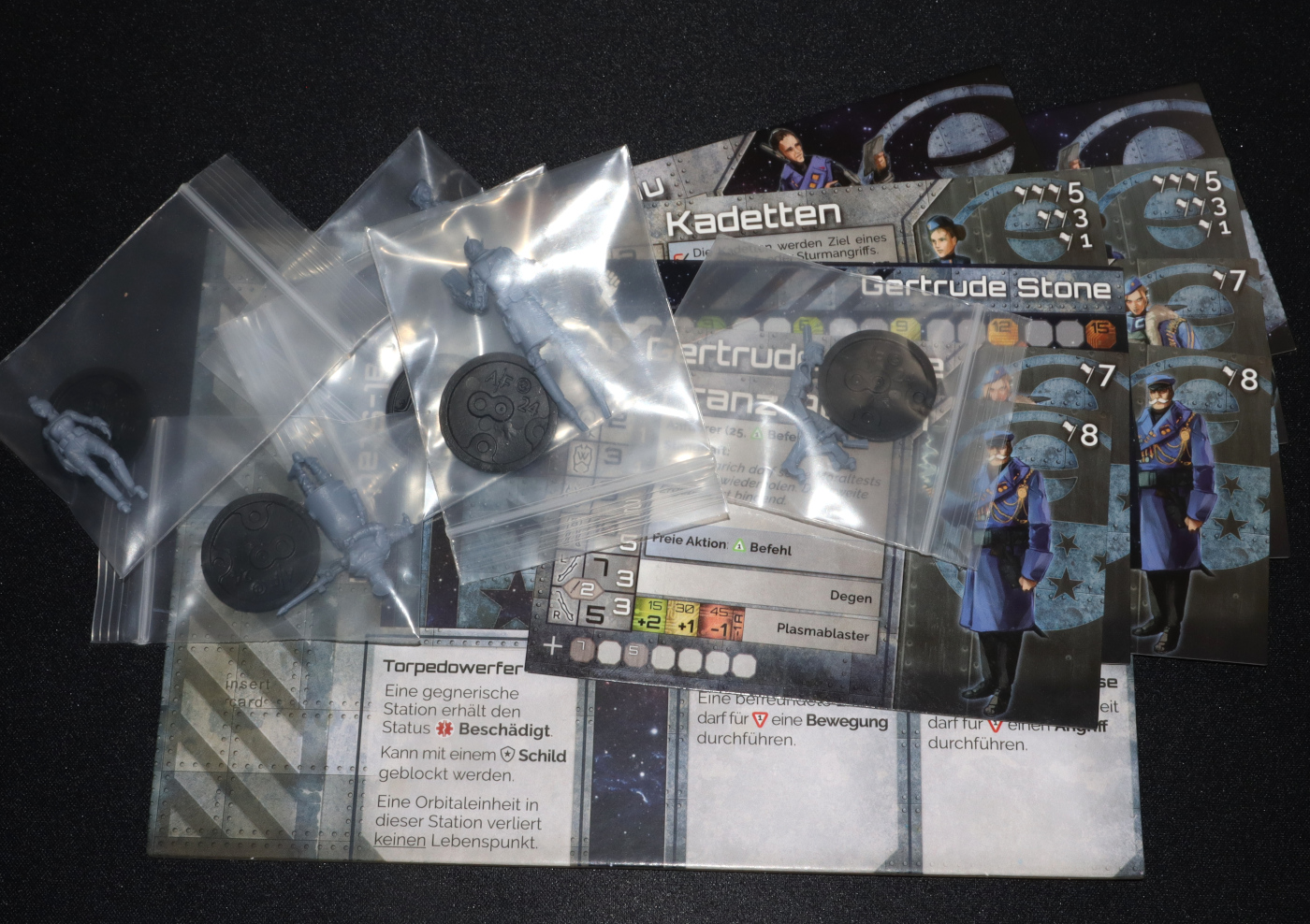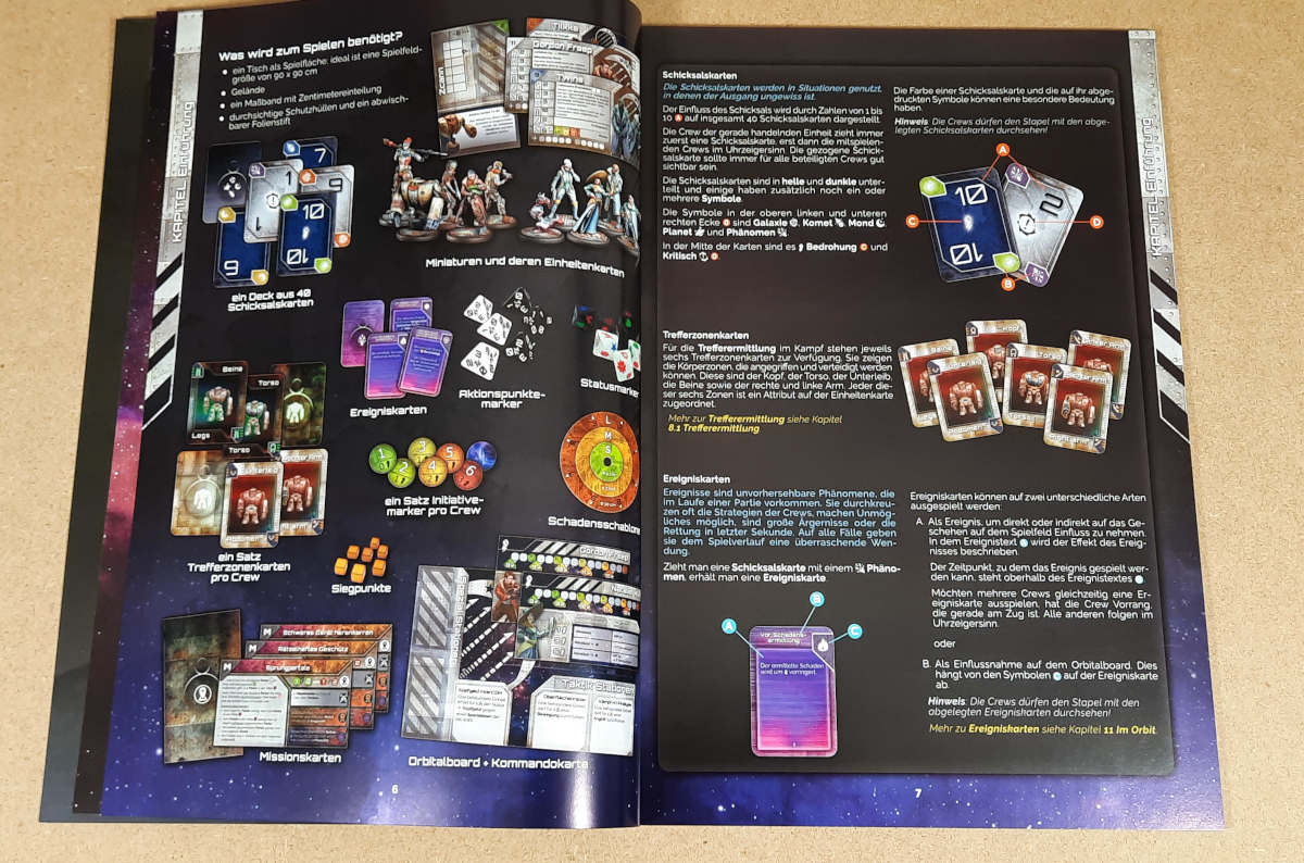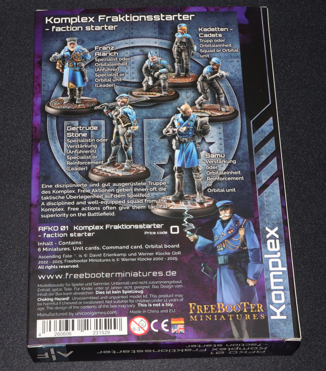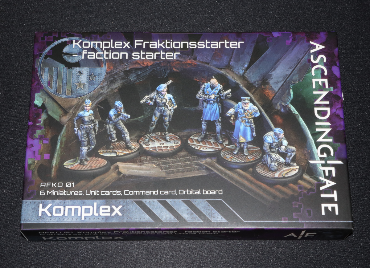 Das Komplex-Starterset enthält neben 6 Modellen auch 6 Profilkarten, eine Kommandokarte und das Orbitalboard der Fraktion.