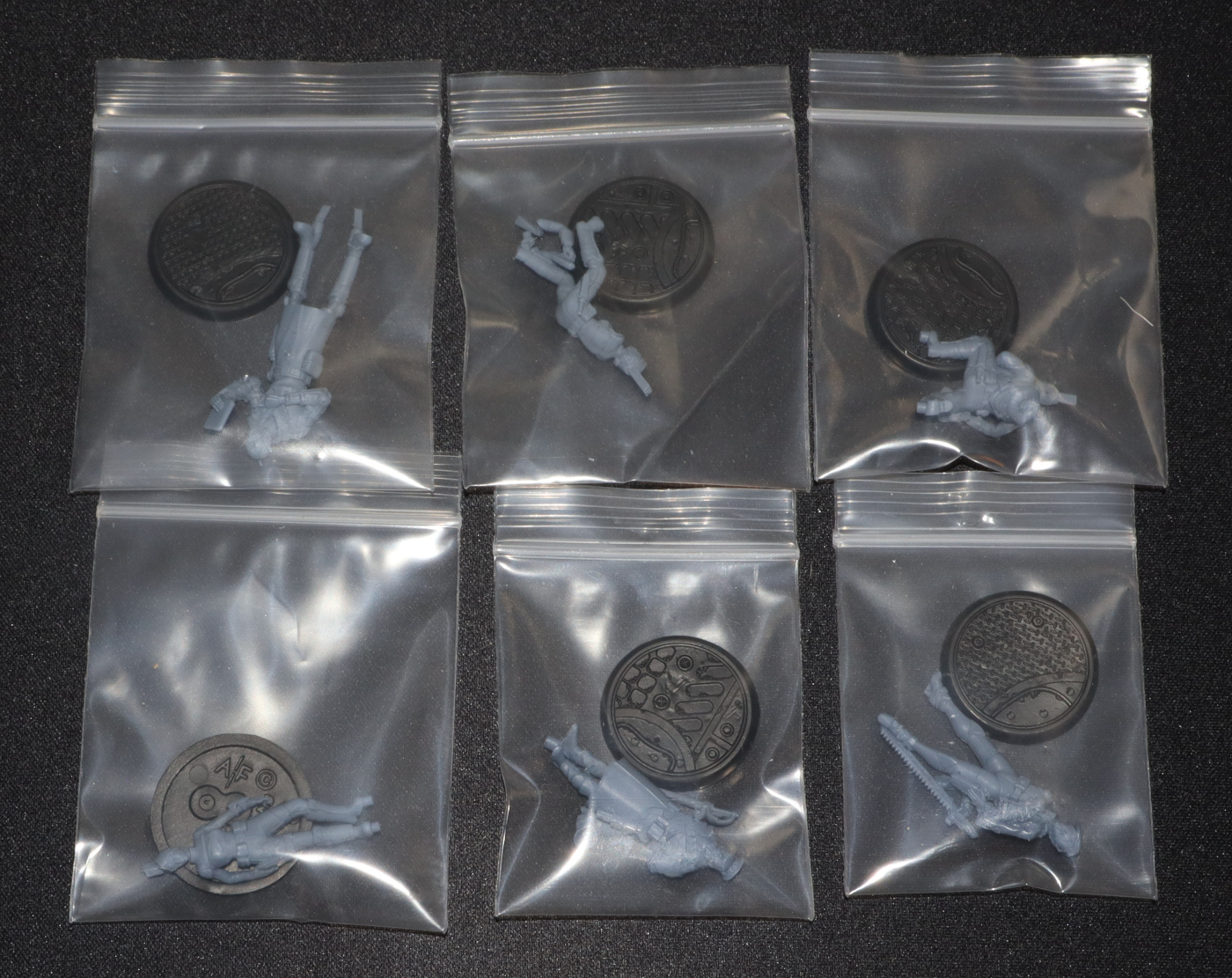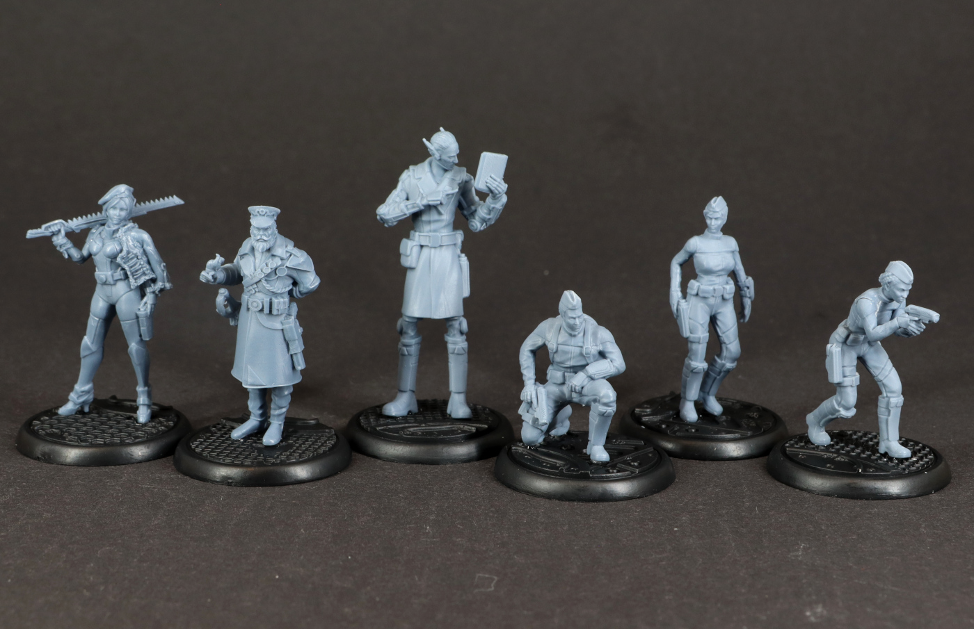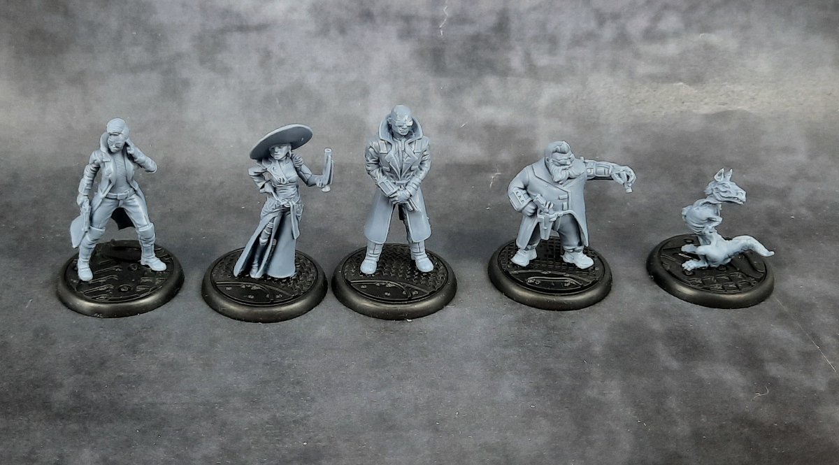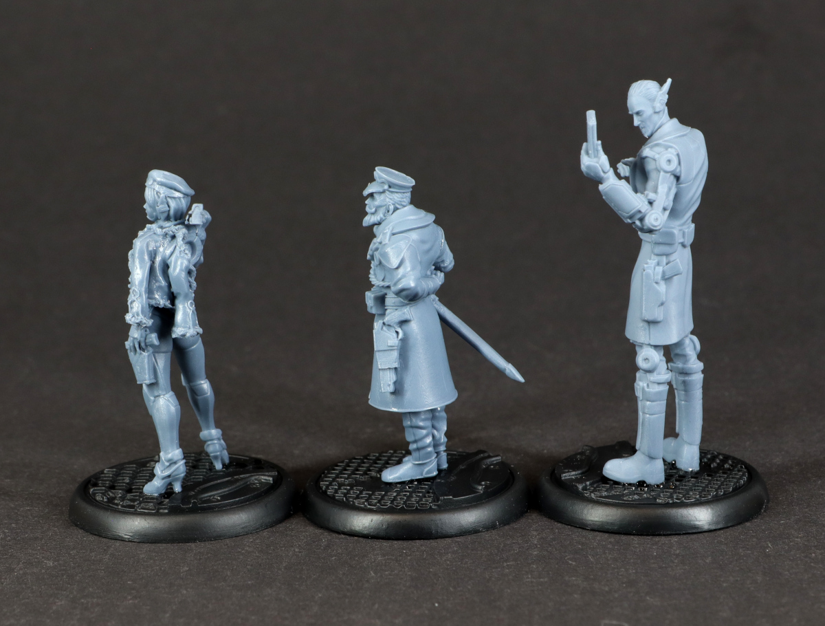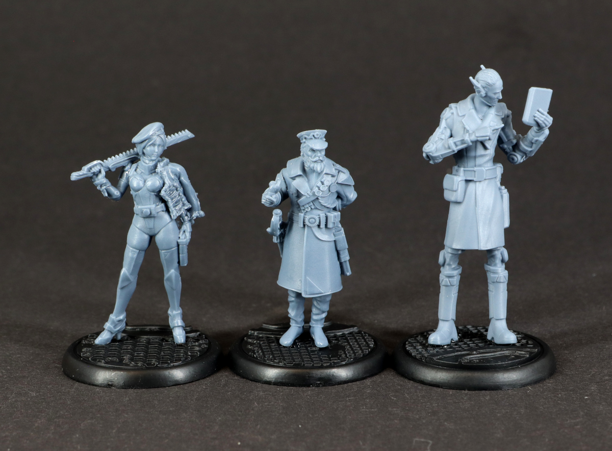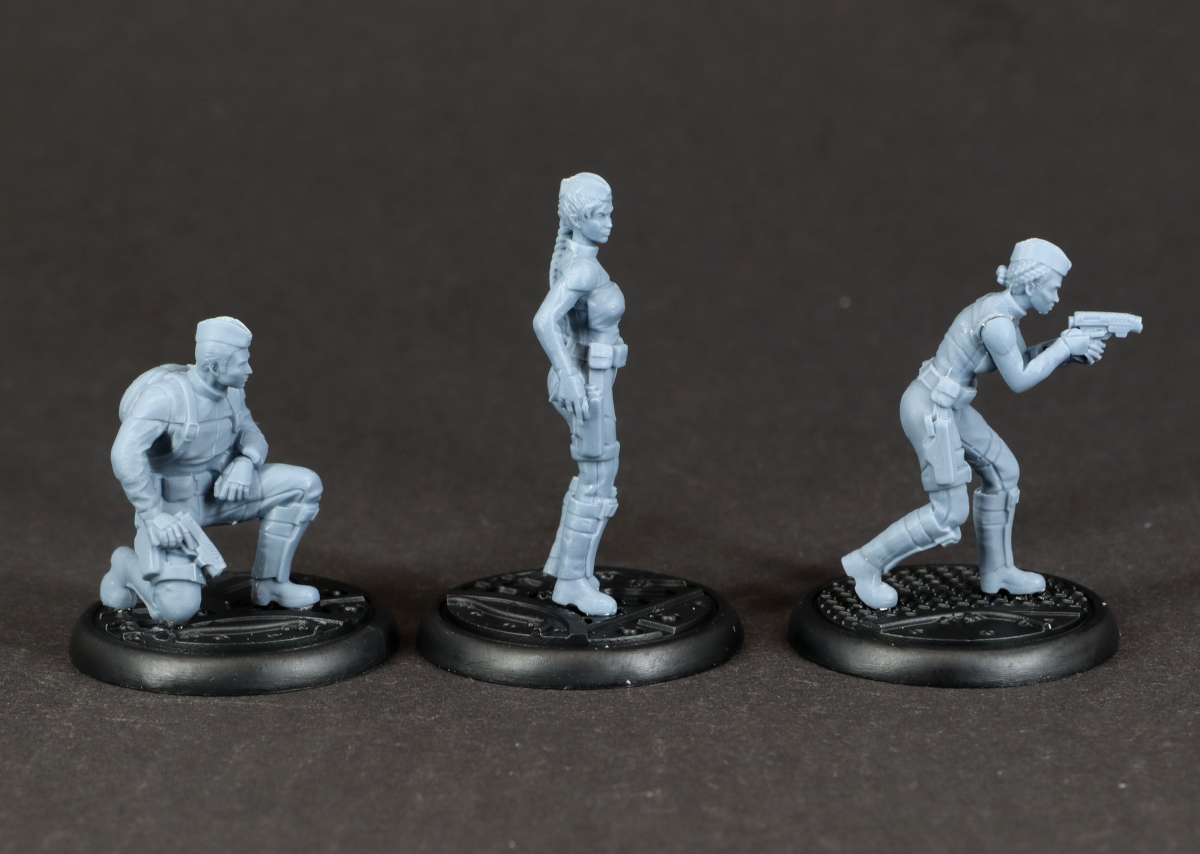 Bei den Modellen fällt vor allem auf, wie klein sie im Vergleich zu einigen anderen Herstellern ausfallen. Auch neben einer etwas älteren Infinity-Miniatur wirken sie eher zierlich, was es für die Bemalung umso wichtiger macht, dass die Details sauber ausgearbeitet sind. Zum Glück ist das bei dieser Fraktion gut gelungen, so dass ich zwar beim Entgraten von Samus Gesicht meine Lupenbrille gezückt habe, aber letztlich keine Probleme hatte. Vielleicht muss ich nach dem Bemalen noch einmal meinen Eindruck korrigieren, aber für den Moment bin ich ziemlich glücklich mit den Minis.