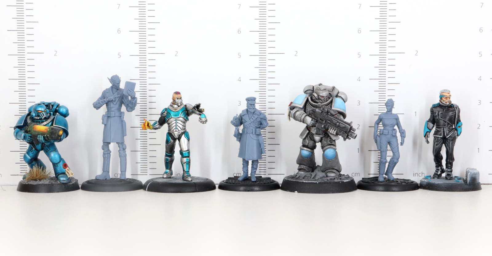Vergleichsmodelle: Firstborn Marine, Deathmatch Pyro, Primaris Marine, Infinity