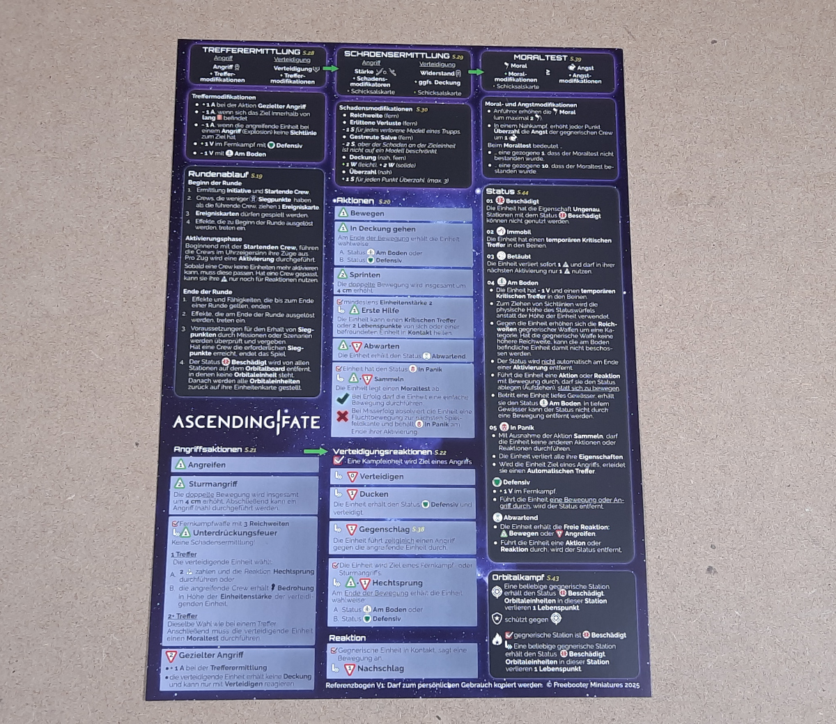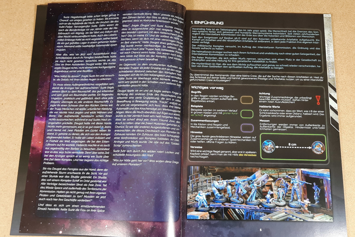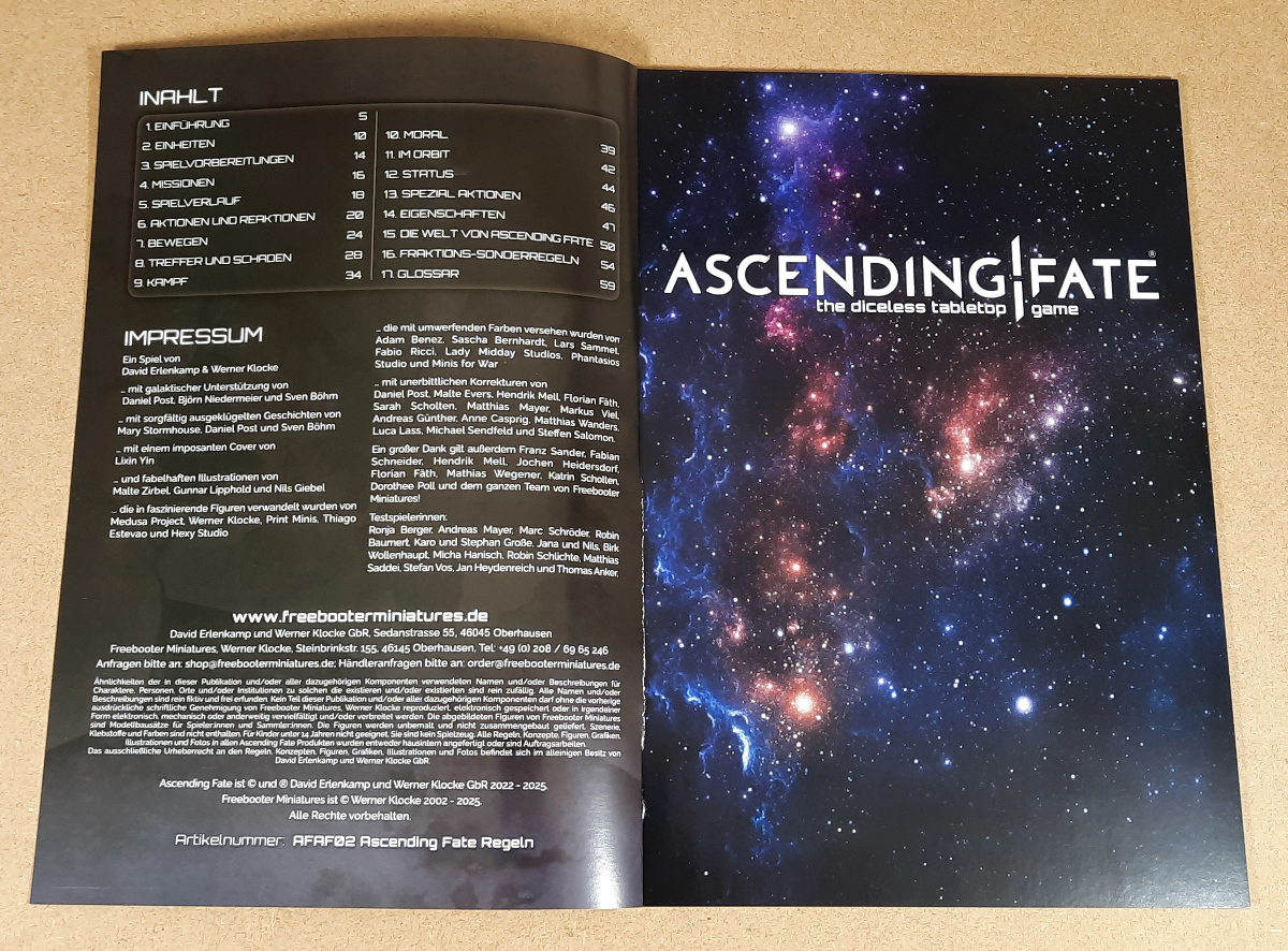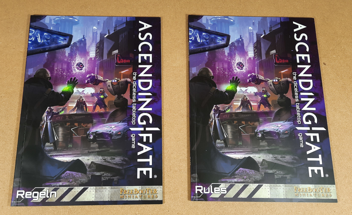 Für 99 Euro bekommt man alles, was man für den Einstieg in Ascending Fate braucht. Man kann nach dem kurzen Aufbauen der Miniaturen quasi schon fast direkt loslegen. Beide Banden in der Box sind Söldner und können auch für später sollte man sich eine der anderen Fraktionen aussuchen direkt dafür mitverwendet werden. Das Material, aus dem die Miniaturen sind, ist sehr gut und lässt sich auch gut mit heißem Wasser korrigieren sollte etwas verbogen sein. Dass unser Buch schon beim ersten Aufschlagen beschädigt war, finden wir etwas schade, aber dadurch fällt das Buch ja nicht auseinander. Ascending Fate geht mit der 2 Spielerstarterbox einen anderen Weg als Freebooters Fate und gerade das finden wir erfrischend und spannend. Wie sich die Starterkampagne spielt, werden wir in einem unserer kommenden Artikel näher anschauen. Wir sind gespannt wie sich Ascending Fate schlagen wird und was es noch alles dafür zu entdecken geben wird.