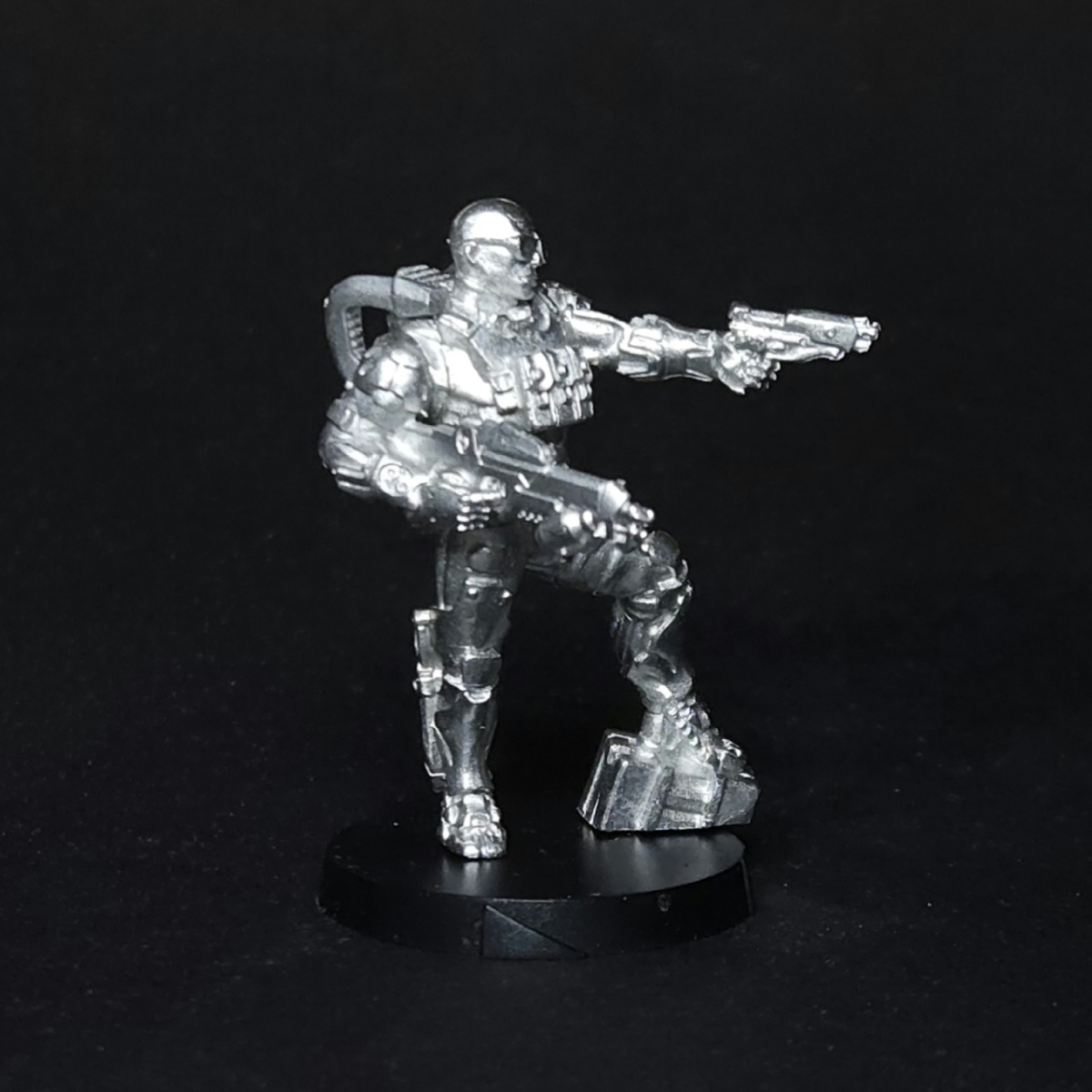 Für Imperials Service kommt ein Resculpt des Gui Feng Xi Zhuang. Welche Version einem besser gefällt bleibt wohl jedem selbst überlassen. Mir gefallen beide ehrlich gesagt nicht so sehr, vor allem stehe ich nicht auf Sonnenbrillen. Auch stand die Frage im Raum, ob gerade diese Miniatur ein Resculpt gebraucht hat, aber das werden wir sicherlich nie ergründen können. Die beiden Profile für gleiche Punktekosten bringen deutlich unterschiedliche Optionen mit. Entweder ein Disco Baller mit Submachine Gun und +1 Burst, oder ein Minelayer mit Combi Rifle und Light Flamethrower. Als Forward Observer, Discover Reroll und Number 2 bringt er praktische Fähigkeiten mit. Immerhin kommt die Miniatur mit beiden Waffenoptionen. Leider ist es wohl mit Metallminiaturen nie so einfach diese modular zu gestalten.
