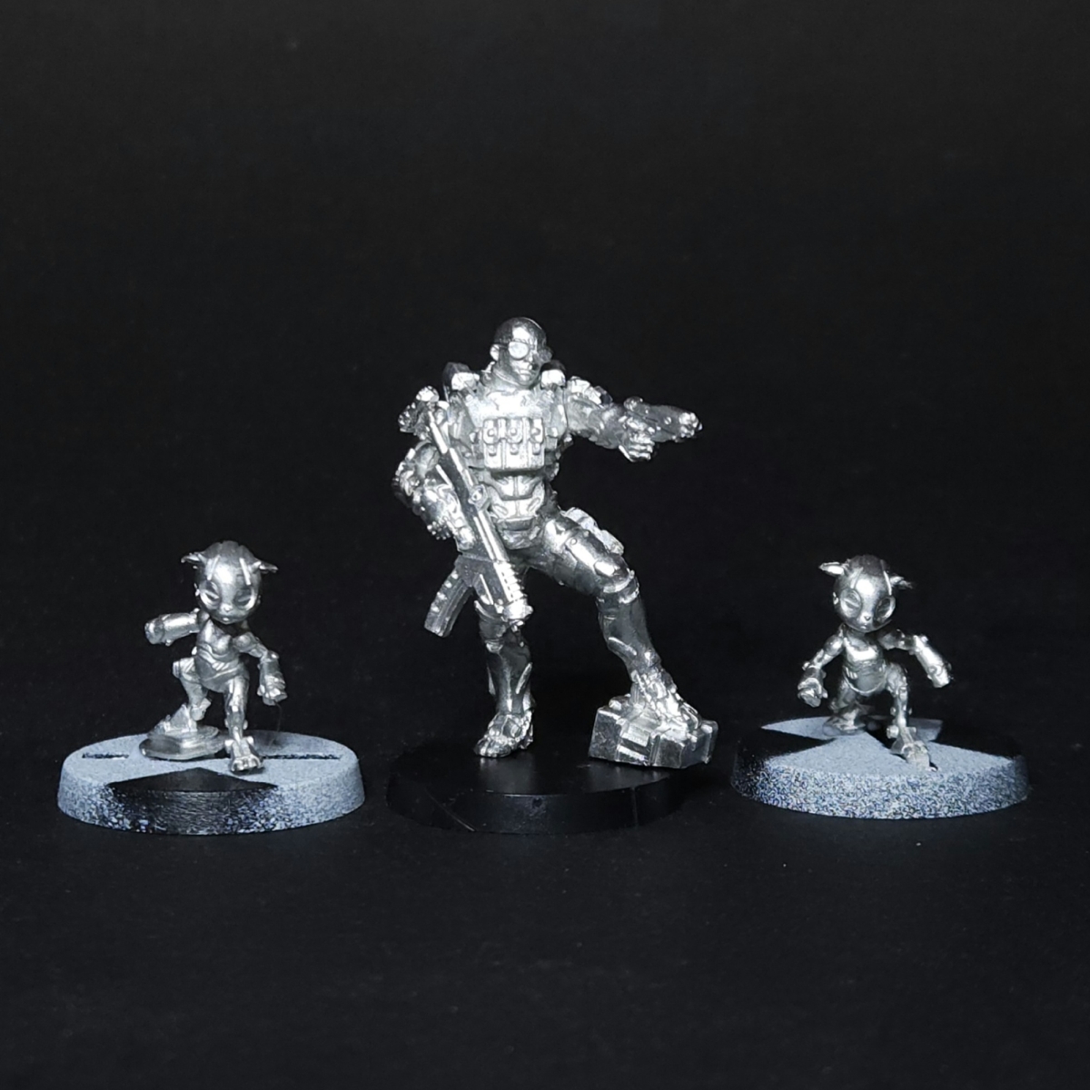 Patroclus wirkt deutlich intensiver wie ein flexibles Taschenmesser bei vergleichbarer Punktezahl. 6 unterschiedliche Profile und Nanoscreen, Holomask und Specialist Operative bringen einiges an Auswahl. Der Contrabandolero ist etwas überraschend als Miniatur im ersten Expansion Pack. Er bringt zwar eine weitere Waffenoption mit im Vergleich zur Miniatur im Army Pack, aber basierend auf vielen anderen fehlenden Miniaturen für die Vielzahl an Profilen hätte man zunächst was anderes erwarten können. Insgesamt gefallen mir die drei dennoch gut und fügen sich gut in das Gesamtbild der neuen Fraktion ein.