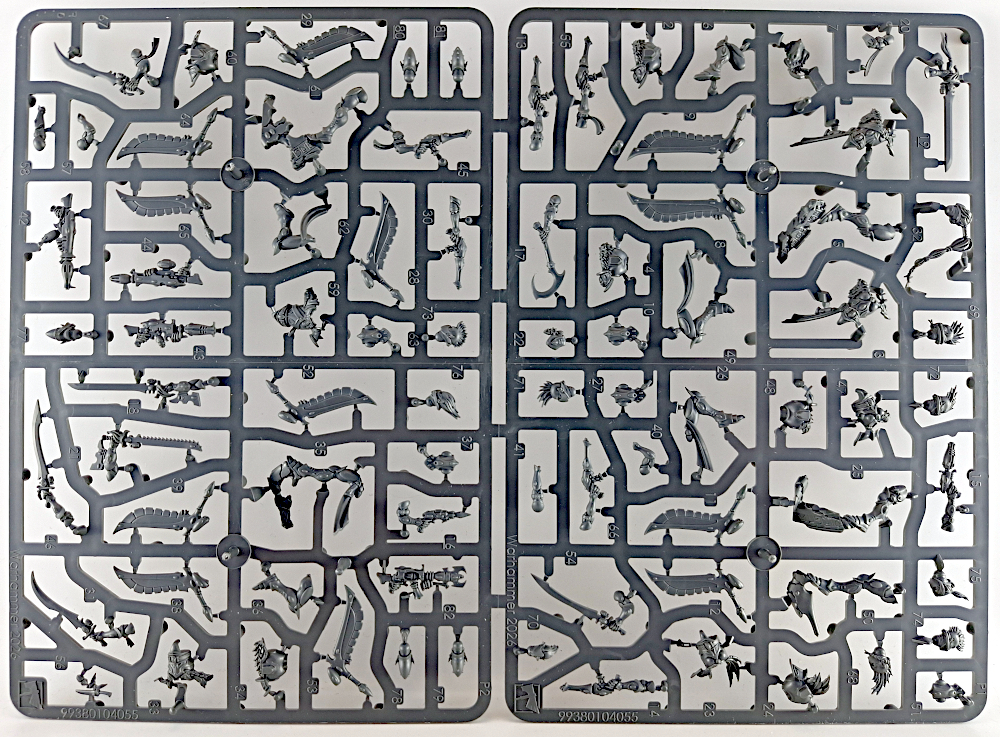 Aus diesem Spielset kannst du 23 mehrteilige Kunststoffminiaturen der Aeldari bauen: