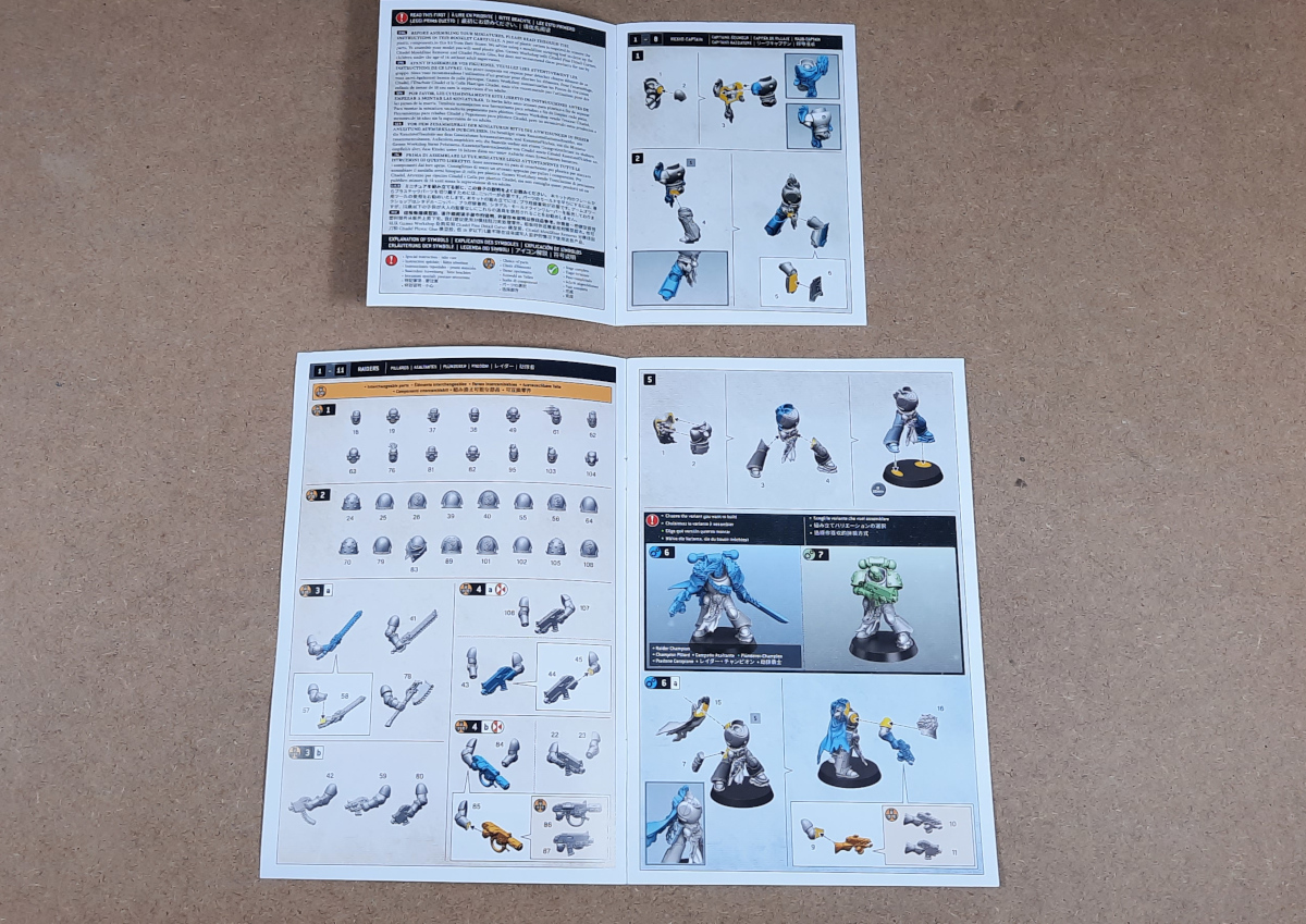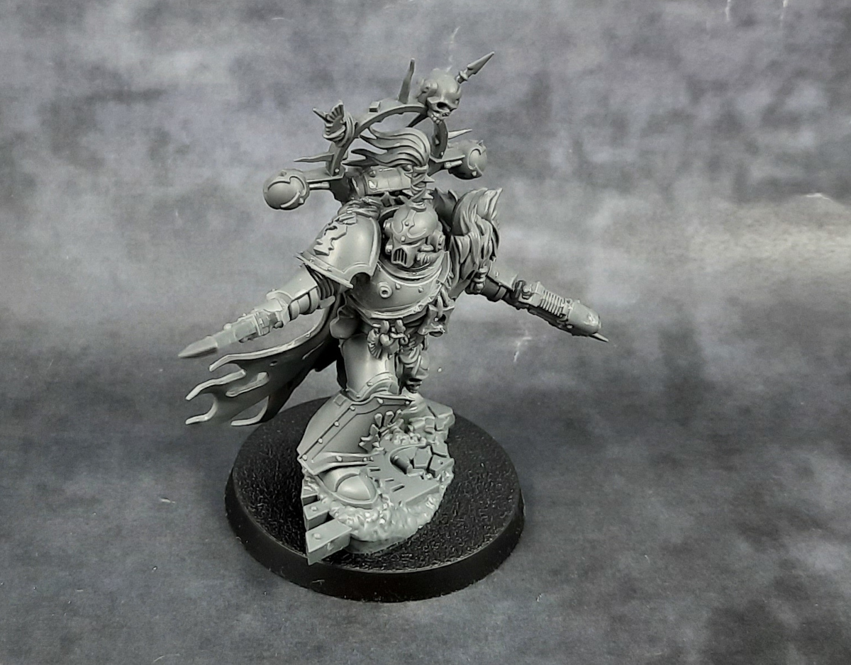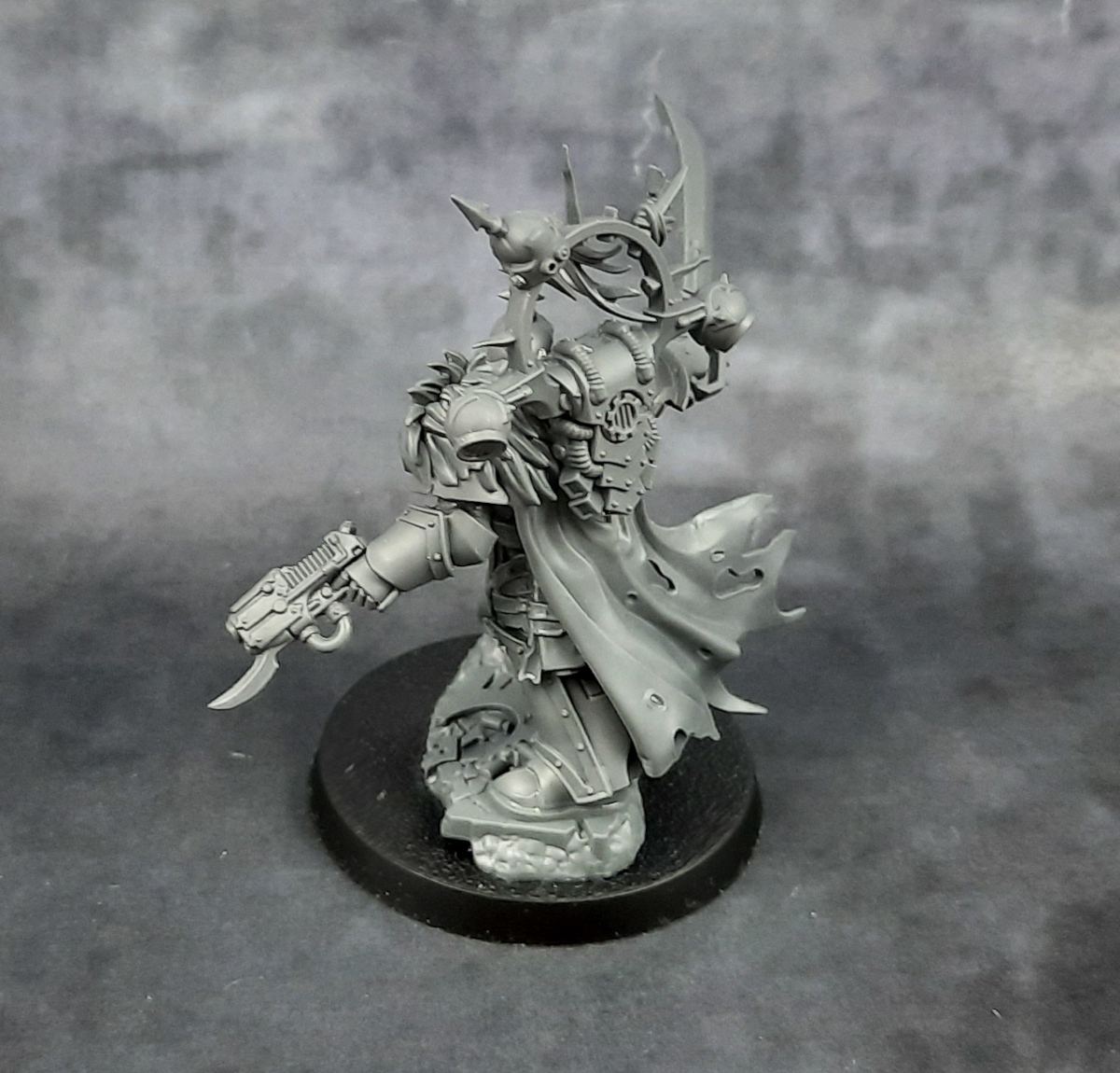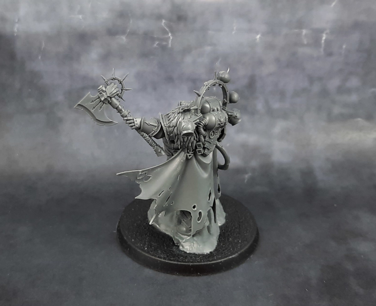 Es ist soweit. Yriel schafft den Sprung vom Metallmodell zu Plastik. Dabei tauscht er den tactical Tyraniden-Kadaver gegen höchst taktische Aeldari-Ruinen. Außerdem kann er dieses Mal auch optional mit Helm gebaut werden. Natürlich sind die beiden modellieren Rückenbanner wieder mit von der Partie. Die Base wächst von ehemals 25 auf nun 40mm. Der Bau geht gut von der Hand, wobei ein paar wirklich sehr kleine Teile dabei sind.