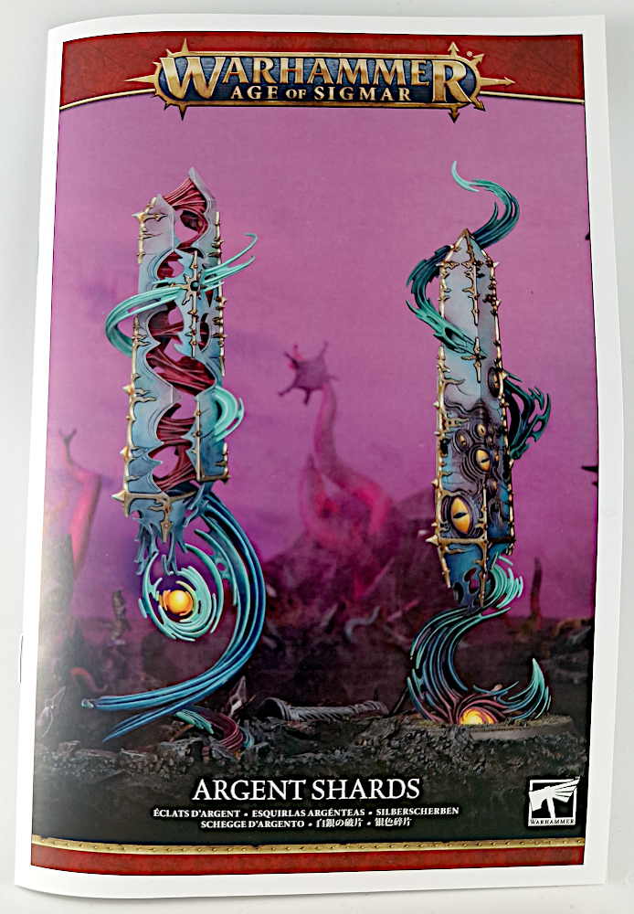 Die Silberscherben kommen in einem einzelnen Gussrahmen. Dazu natürlich noch eine Bauanleitung und zwei 80mm Rundbases.