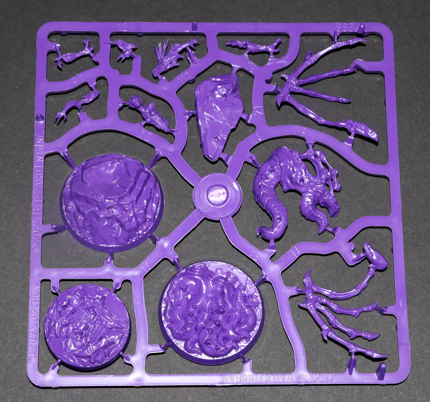 Kerrigan ist im Vergleich zu den Zerglingen deutlich fragiler und auch komplexer im Zusammenbau. Auch auf Bruchgefahr bei den kleinen Teilen sollte man achten. Ein nettes Element sind die beiden Baseoptionen, die den Platz im Gussrahmen nutzen und die Möglichkeit bieten, Kerrigan entweder auf einen Felsen oder auf Tentakel zu stellen.