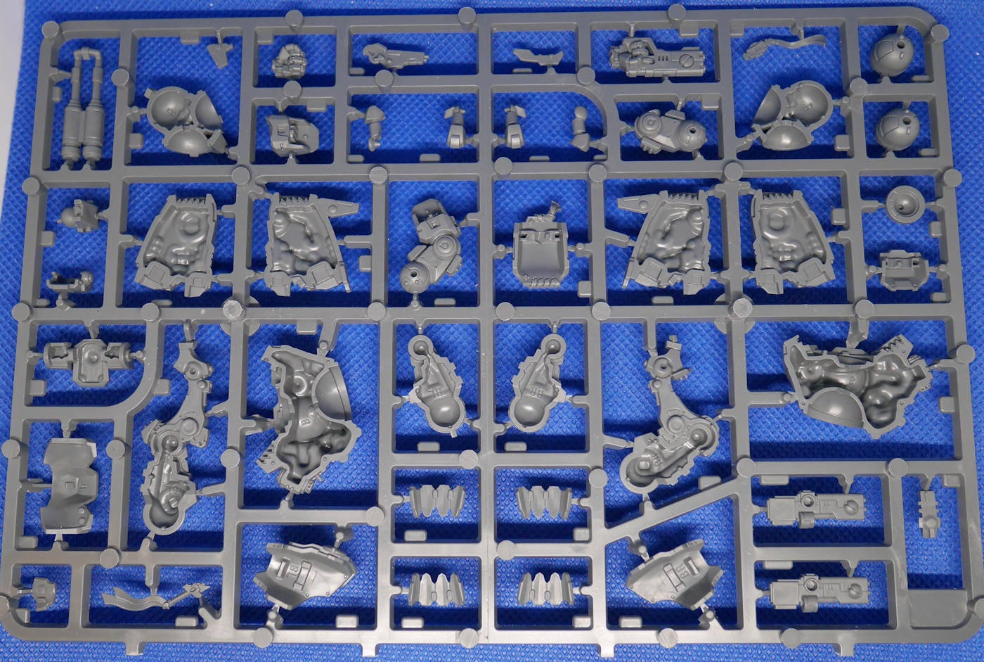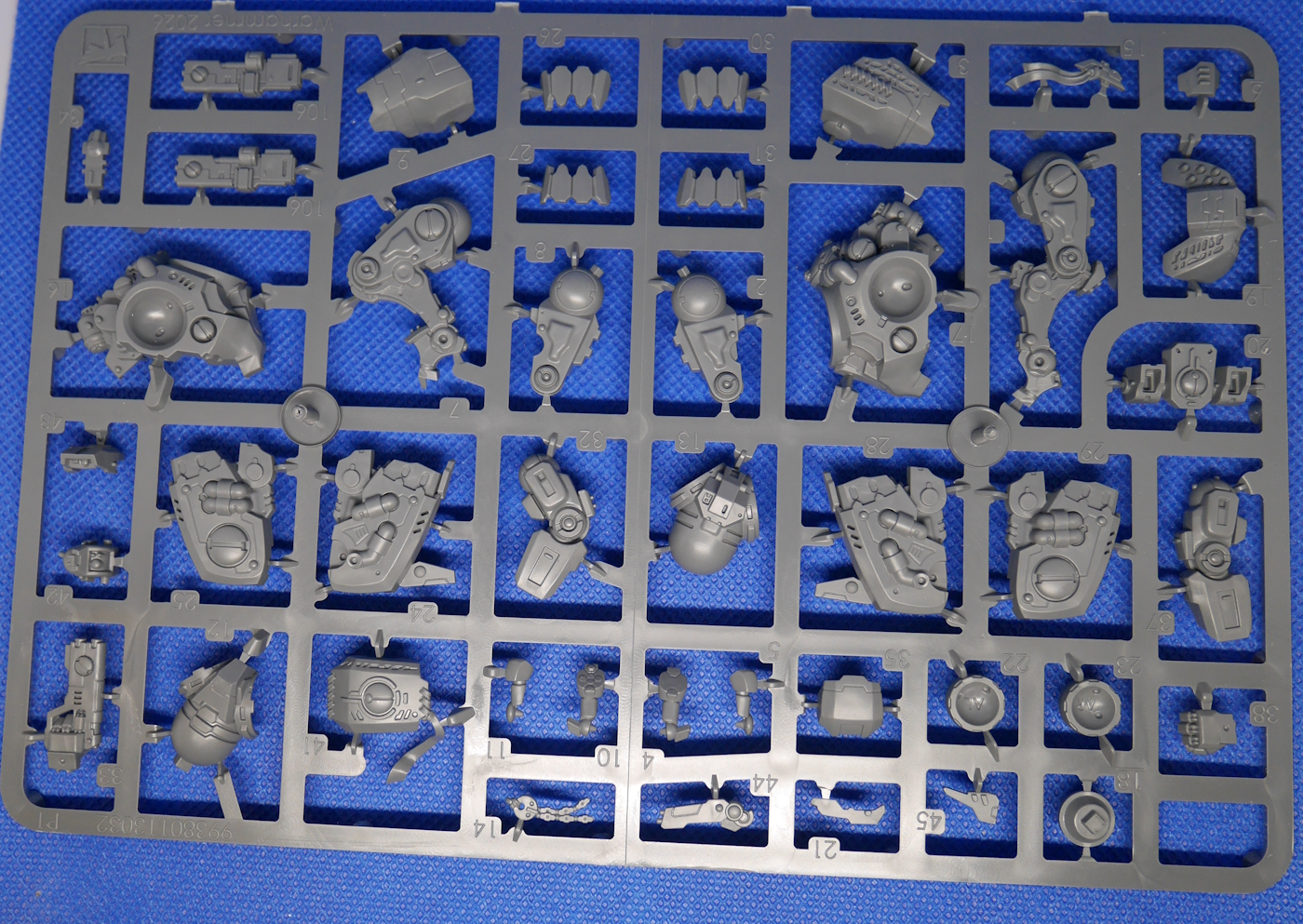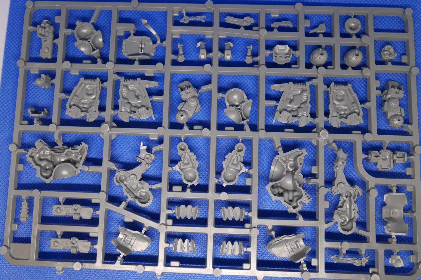 Nachdem ich schon öfter gehört habe, dass die Tau den Gundam ähneln kann ich nach dem Zusammenbau das in Teilen bestätigen: Wie von Games Workshop gewohnt sind die Passungen gut, ich konnte mich einige Stunden gut mitdem Basteln beschäftigen. Leider ist es mir nicht gelungen, die Visiere beweglich zu halten – hier sind die Klebestellen, die man für die Antenne am seitlichen Visier hat, die selbiges halten sollen so klein, dass mir Kleber in die Ritzen geflossen ist und die Visiere schon vor dem Grundieren fest saßen. Bei der Wahl, die Waffen mit oder ohne Bändchen zu bauen würde ich noch nicht wirklich von Bauoptionen sprechen, die beiden Mechs sind optionslos zu bauen.