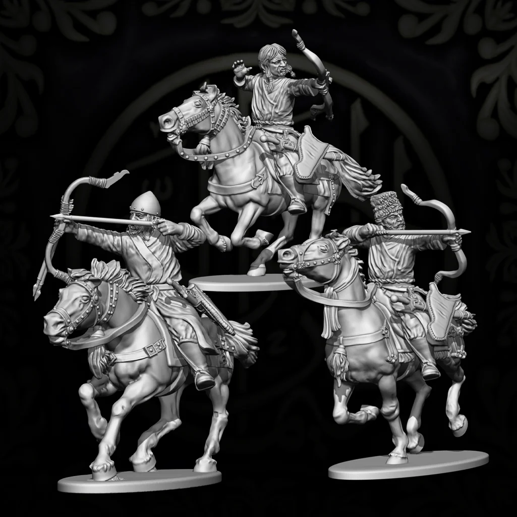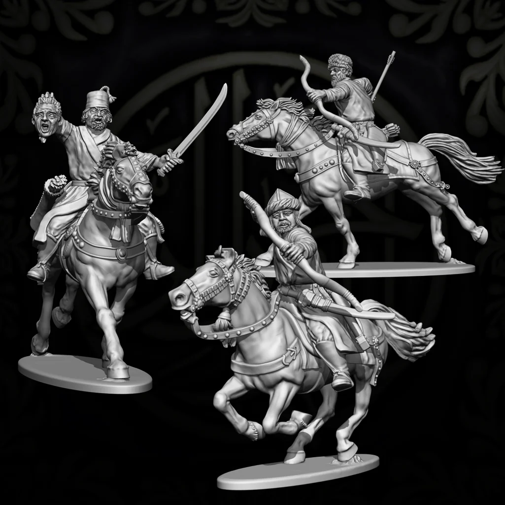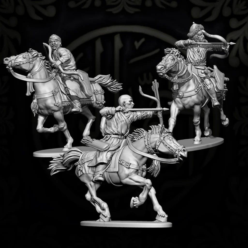 12 x Medieval Islamic/Muslim Horse ArchersHorse archers were the backbone of Islamic armies throughout the medieval period and the dominant troop type during the Crusades.This plastic set depicts Seljuk and Turkoman horse archers, featuring a wide variety of head options that reflect the diverse warriors drawn from across the Islamic world. Turkoman tribes fought in vast numbers as auxiliaries within Seljuk and other Islamic forces, famed for their mastery of mounted archery and fluid battlefield tactics.This set contains: