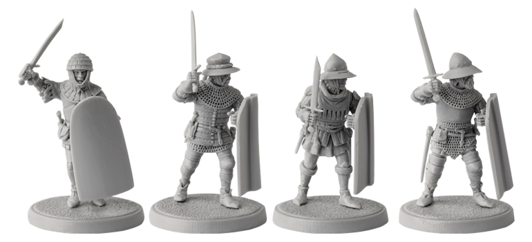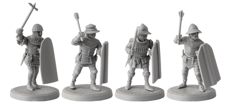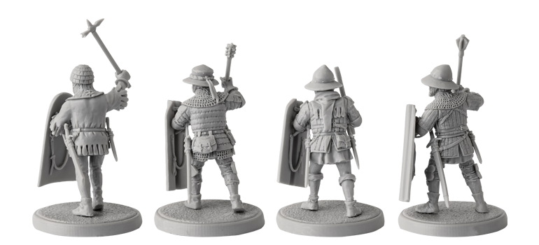 This set contains 4 unpainted figures of Hussites with pavises. Ideal for games like SAGA and other wargames. All figures in the set have a second complement of weapons. These figures would also be suitable for any 15th century European warrior.