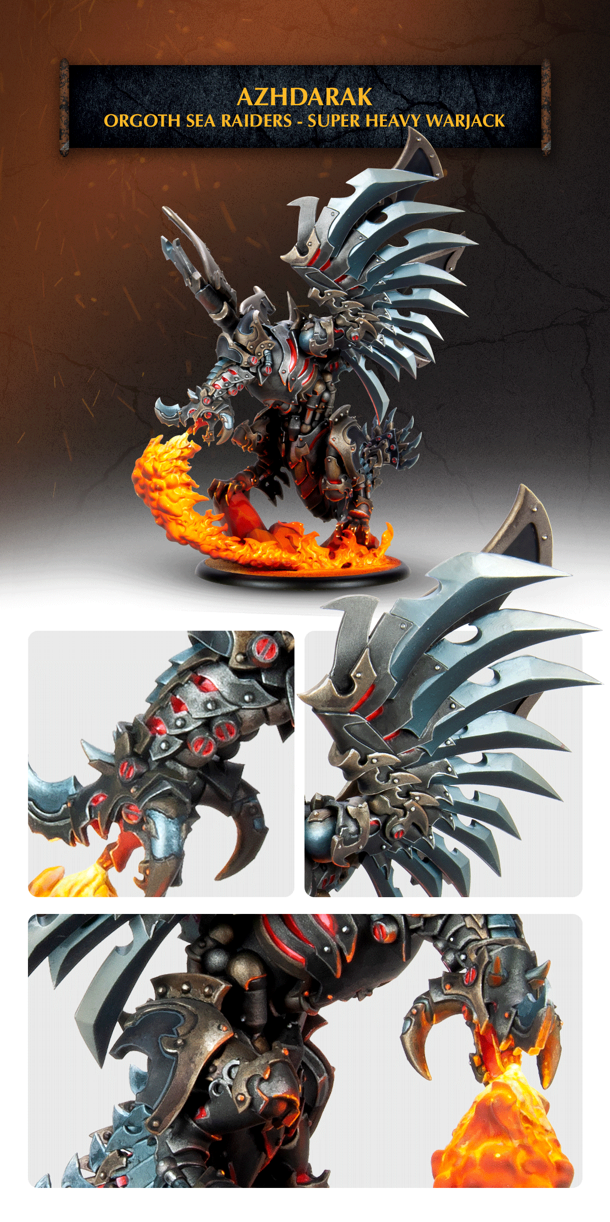 The Orgoth Sea Raiders herald the inferno. Their terrifying draconic metal menace, Azhdarak, herald of Immolation, is here to set the horizon on fire.