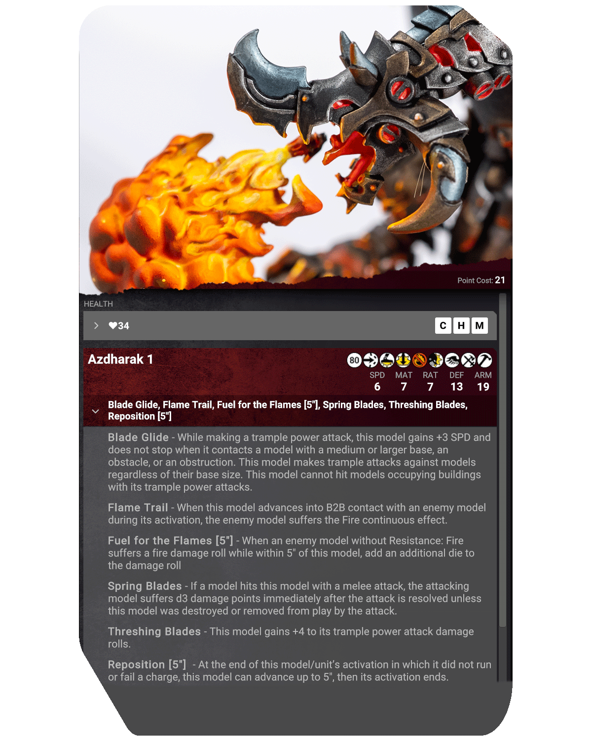 On the tabletop, Azdharak’s blazing aggression complements the Orgoth’s ambitions: charge in, tear through even the biggest foes with Blade Glide, and leave naught but ash behind with the deadly Flame Blaster.